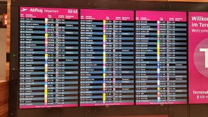 Rucksรคcke auf und los gingen wir. Es gibt einen eigenen Mc Parking-Shuttle von Mc Parking zum BER und zurรผck. Wir kamen unten an und der Fahrer wollte gerade losfahren, bemerkte uns und wir konnten noch einsteigen. Ein Glรผck, sonst hรคtten wir 20 Minuten warten mรผssen und das bei 6 Grad. 10 Minuten spรคter waren wir bereits am BER. Wir gingen zum Terminal 2, wo wir starten sollten. Als wir in die Halle kamen, waren wir geschockt, kaum Sitzplรคtze und eine Menge Menschen schlief auf dem FuรŸboden. Nach einer Weile, war uns sehr warm in unseren Schuhen, wir vermuten es gibt eine FuรŸbodenheizung. Es gab einen Selbst-Check-In, dieser funktionierte reibungslos. Ticket gescannt und man erhielt die Bordkarte und das Label fรผr die Rucksรคcke. Dann mussten wir die Rucksรคcke noch abgeben, an der Abflugwand wurde der Schalter angezeigt, welcher fรผr uns zustรคndig war.