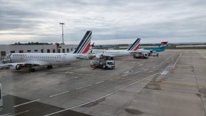Die Warteschlange war sehr lang. Ein netter Sicherheitsbeamter sprach uns an, dass wir ihm folgen sollen, wir legten die Rucksรคcke auf die Waage, er scannte unsere Tickets und weg waren die Rucksรคcke. Und das Ganze nicht mal an dem Schalter, an dem wir hรคtten anstehen mรผssen. Wir bedankten uns und gingen weiter durch den Flughafen. Setzten uns an die Seite und aรŸen unsere mitgebrachten Schnittchen, denn wir hatten noch viel Zeit. Ein Glรผck hatten wir etwas zum Essen dabei, denn hier gab es Essen und Trinken nur aus den Automaten, diese waren sehr teuer. Wasser 0,5 l fรผr 5 โ‚ฌ, nein danke. Nun gingen wir zur nรคchsten Warteschlange an der Sicherheitskontrolle. Jetzt kamen erst die Mitarbeiter des Flughafens zum Arbeitsbeginn, alle mussten einzeln eintreten. Endlich รถffnete die Sicherheitskontrolle, wir legten unsere Daypacks, die Bauchtaschen und unsere Jacken in die Boxen und wurden einzeln aufgerufen und โ€ždurchleuchtetโ€œ. Wieder hieรŸ es warten bis zum Boarding. Wir sollten 6 Uhr starten, kurz nach halb 6 startete das Boarding, wir stellten uns an und endlich saรŸen wir auf unseren Plรคtzen. Berlin erwachte und es wurde langsam heller. Wir dachten, dass wir etwas schlafen konnten, denn nun waren wir 24 h wach, aber vor Aufregung bekamen wir kein Auge zu. In Paris an Terminal 2F angekommen, fanden wir schnell das Shuttle, welches uns zu Terminal 2G brachte. Hier waren es bereits 20 Grad, laut Anzeige im Bus.