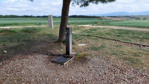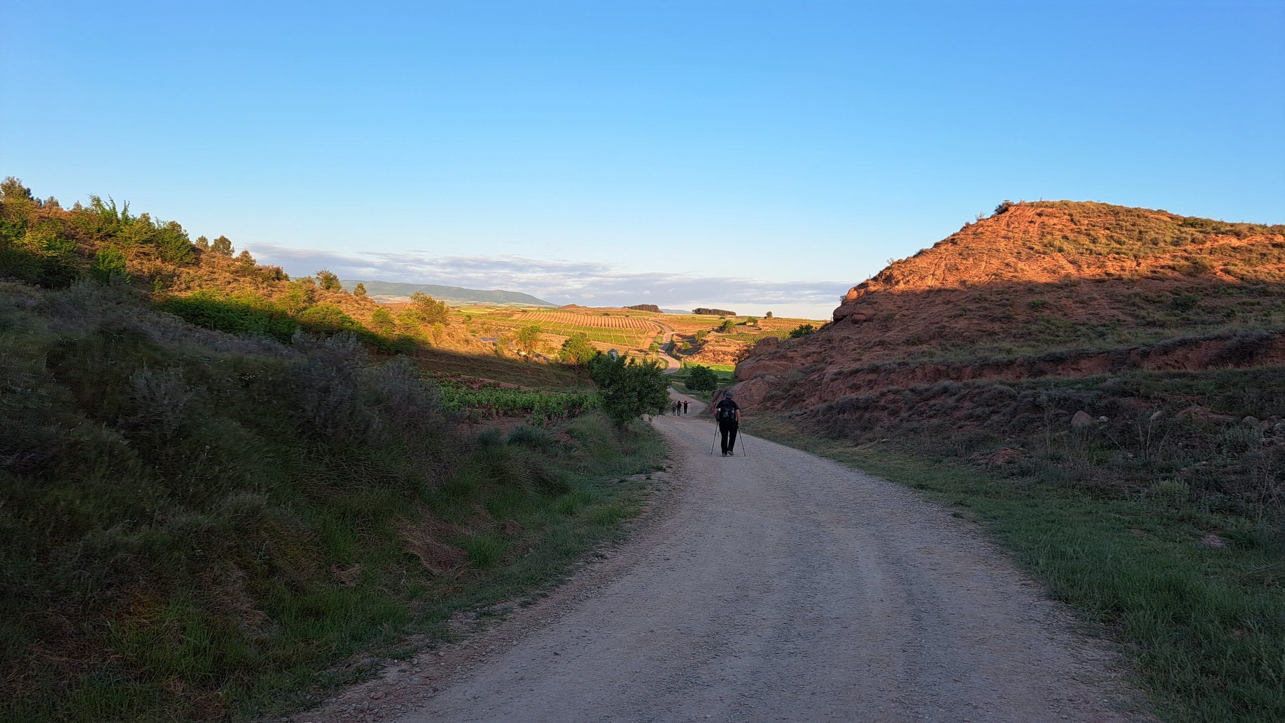 Es folgten die Weinberge, der Weg schien nicht enden zu wollen. In Azofra machten wir unsere erste Pause bei Kaffee und Muffins, hier gab es auch einen Stempel. Und weiter ging es in die unendliche Weite. Nach einem Anstieg kam ein Rastplatz, wir machten eine weitere Pause und aßen unser Baguette und Oliven. Wir füllten unsere Wasserflaschen an einem Brunnen wieder auf.
