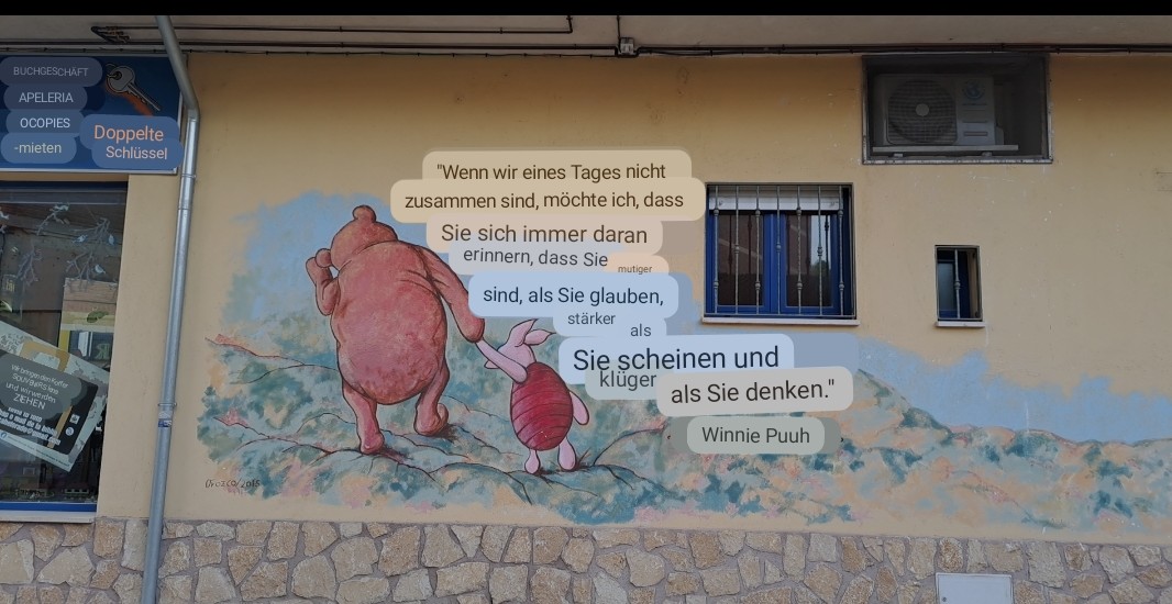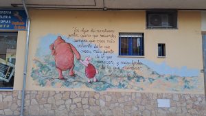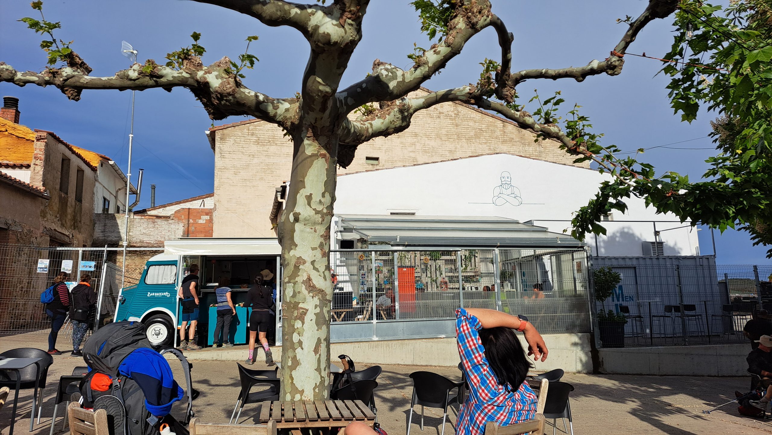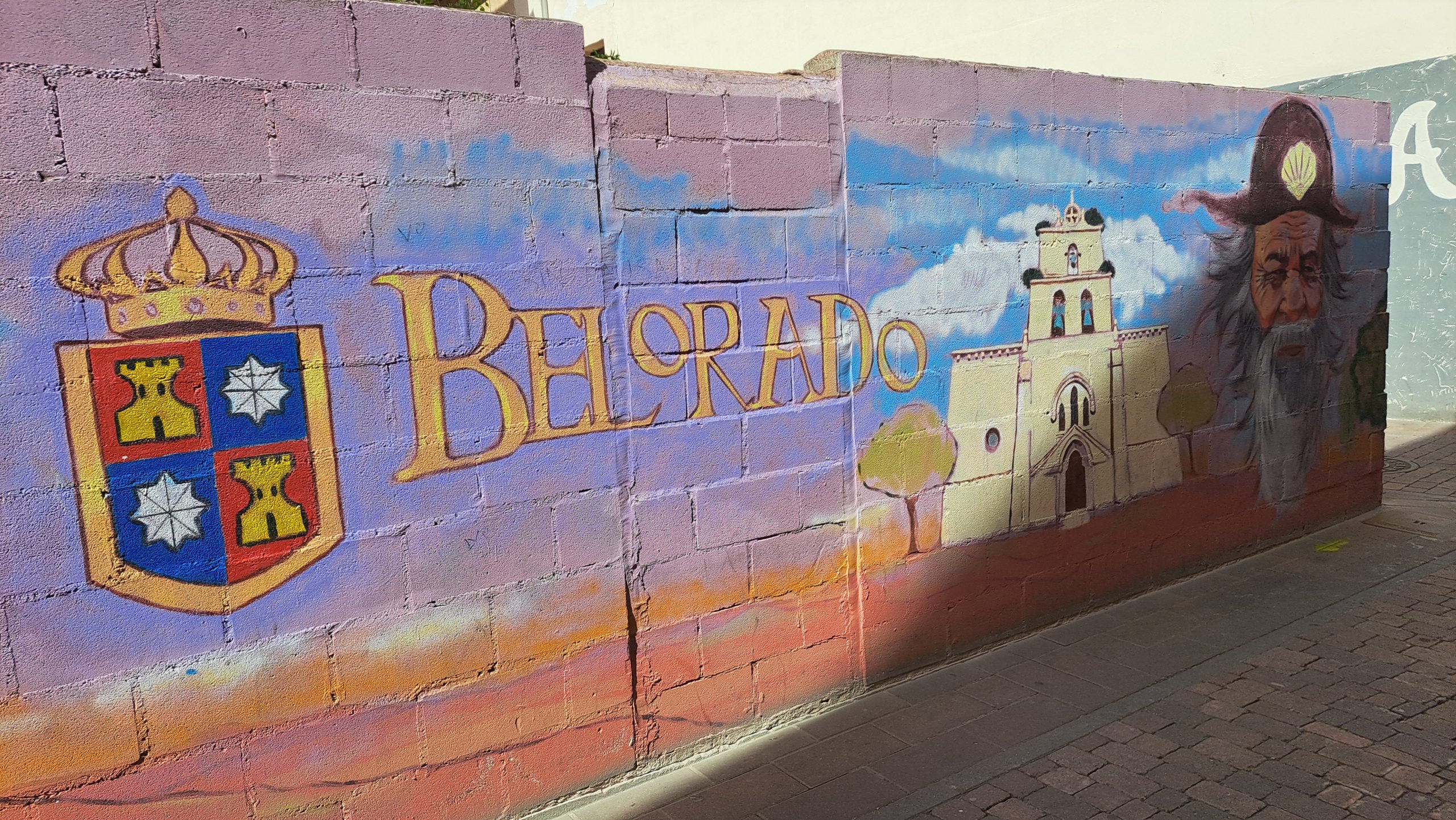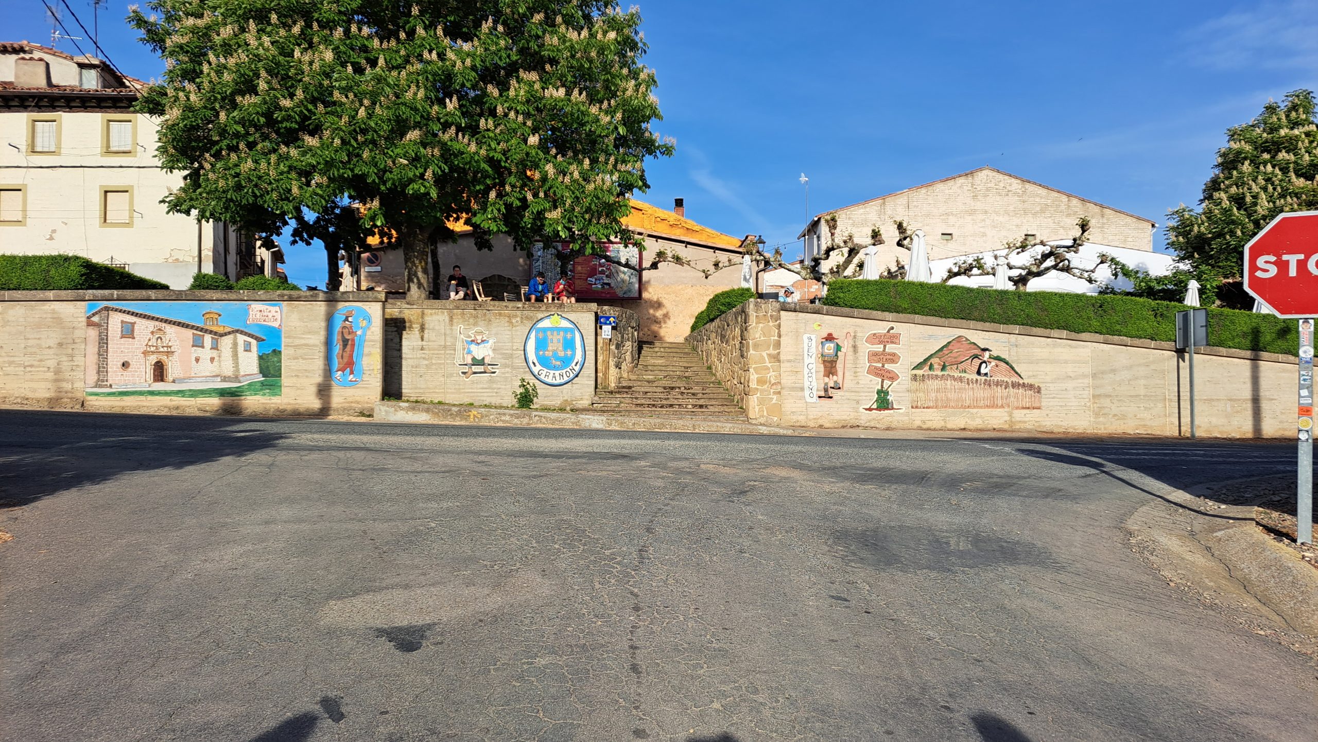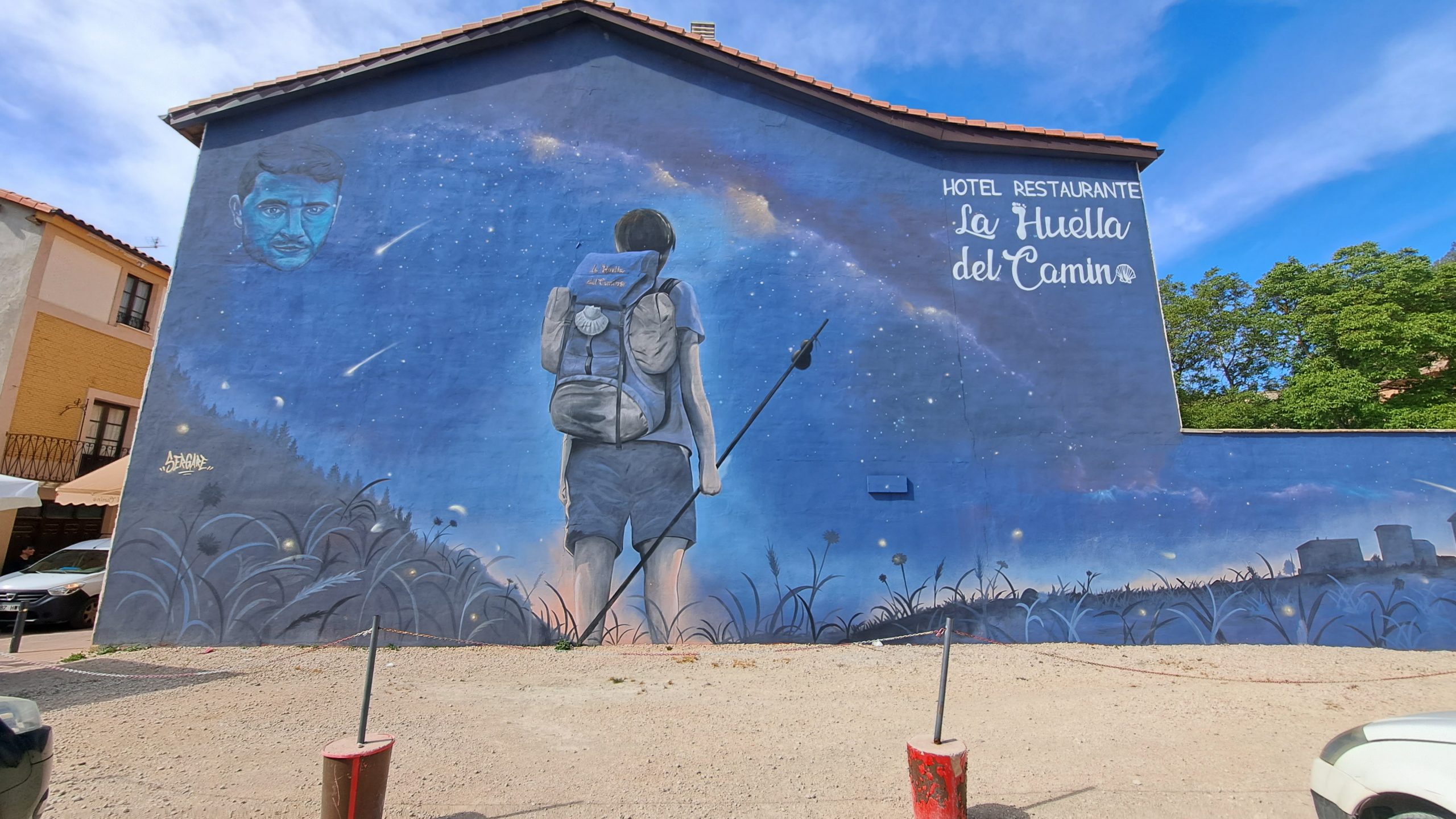 Vor Belorado war ein kleiner Rastplatz, hier machten wir eine 10 minütige Pause. Ein anderer Pilger kam vorbei, streckte uns seine Hand entgegen und sagte „Hi, I`m Sam from the United States“. Was für ein witziger Kerl. Wir liefen an der Herberge am Ortseingang vorbei und gingen zu unserer Pension. Belorado war ein schöner Ort mit vielen Wandbildern.