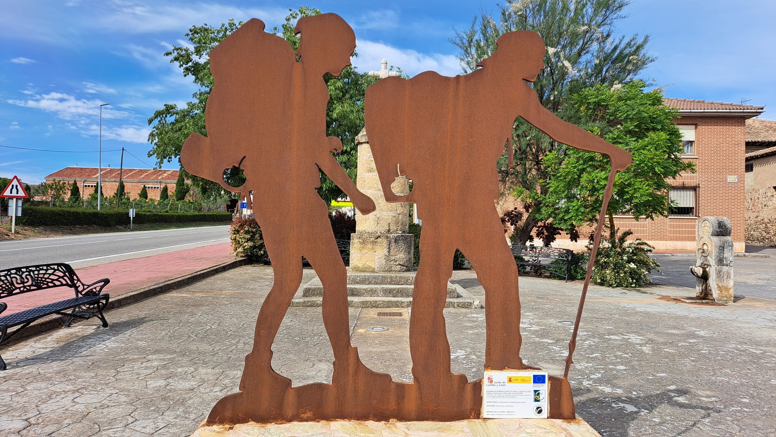 Endlos wirkende Wege führten uns bis zur Autobahn, nun liefen wir neben der Straße weiter. In Redecilla del Camino holten wir uns in der Tourist Information einen Stempel. Vor der Tourist Information stand eine schöne Pilger Silhouette.