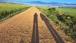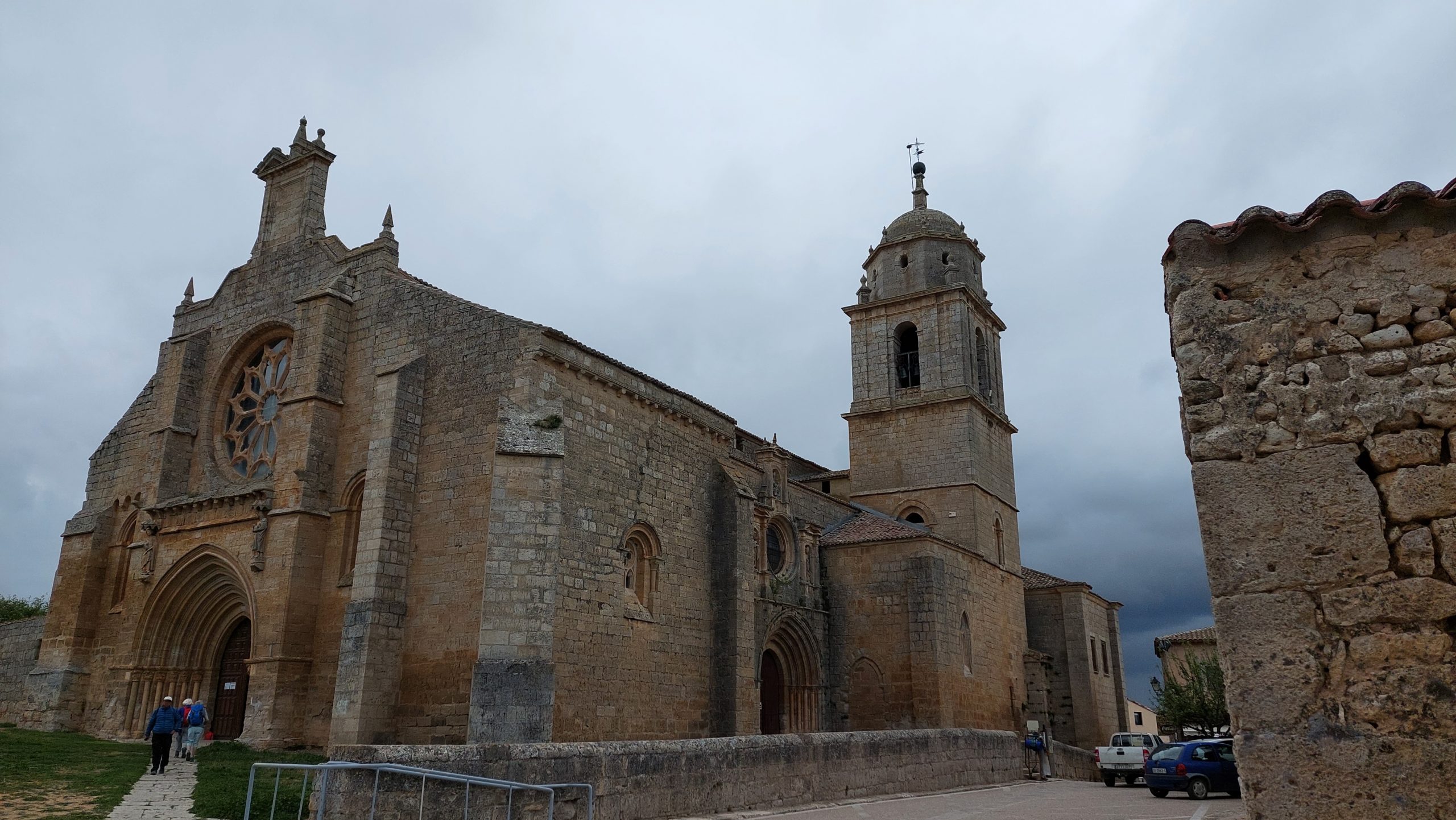 Der Weg heute war auch sehr schön zu gehen. Nun sahen wir San Anton, eine Ruine. Hier saß Marcel auf einer Bank und freute sich uns zu sehen. Wir gingen nun zusammen weiter. Ich beobachtete den Himmel, dieser zog sich bedrohlich zu. So gingen wir ein wenig schneller. An der Kirche an Ortseingang von Castrojeriz verabschiedeten wir uns vorerst von Marcel.