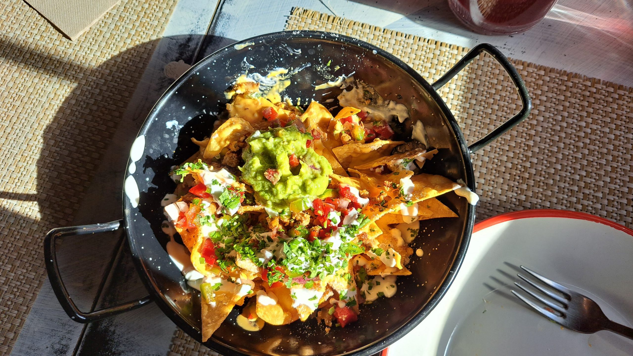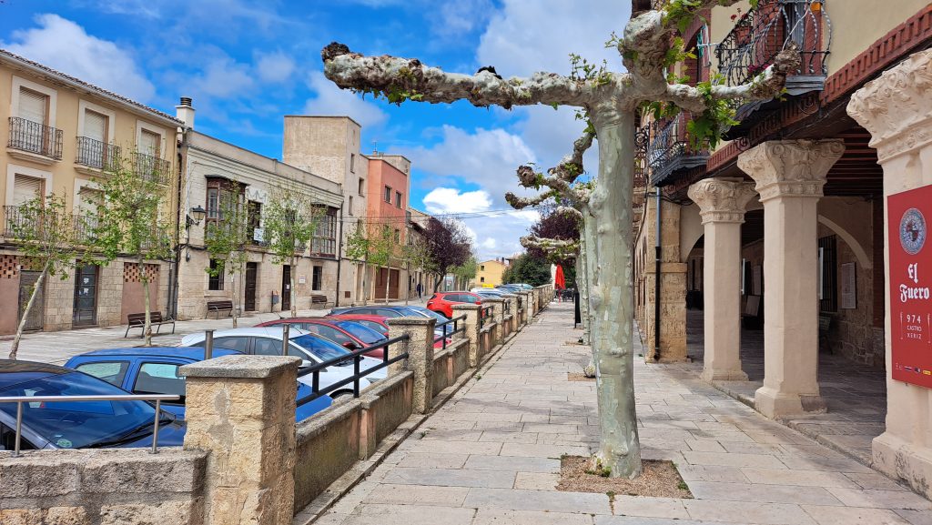Wir setzten uns unter die Bedachung, als der Regen durch war, gingen wir wieder ins Freie. Gegen 15:00 Uhr verabschiedeten wir uns von Marcel und jeder ging in seine Unterkunft. Wir hatten ein Zweibettzimmer mit Gemeinschaftsbad. Bis zum Abend war noch Zeit, so buchten wir noch ein paar Unterkünfte weiter. Wir schauten uns Castrojeriz an und gingen in den Supermercado und kauften einiges für morgen ein. An der Kasse waren ein paar Empanada, diese wollte ich probieren und wir kauften 2. Ach waren diese lecker. Noch schnell in die Apotheke und nun suchten wir ein Restaurant zum Abendessen. Wir gingen in das El Fuero. Mein Essen war sehr lecker, wir hatten Sangria, ich hatte Tortilla mit Chili con Carne und Nico hatte Hähnchenbrust-Sticks.