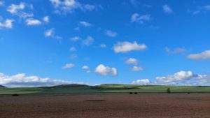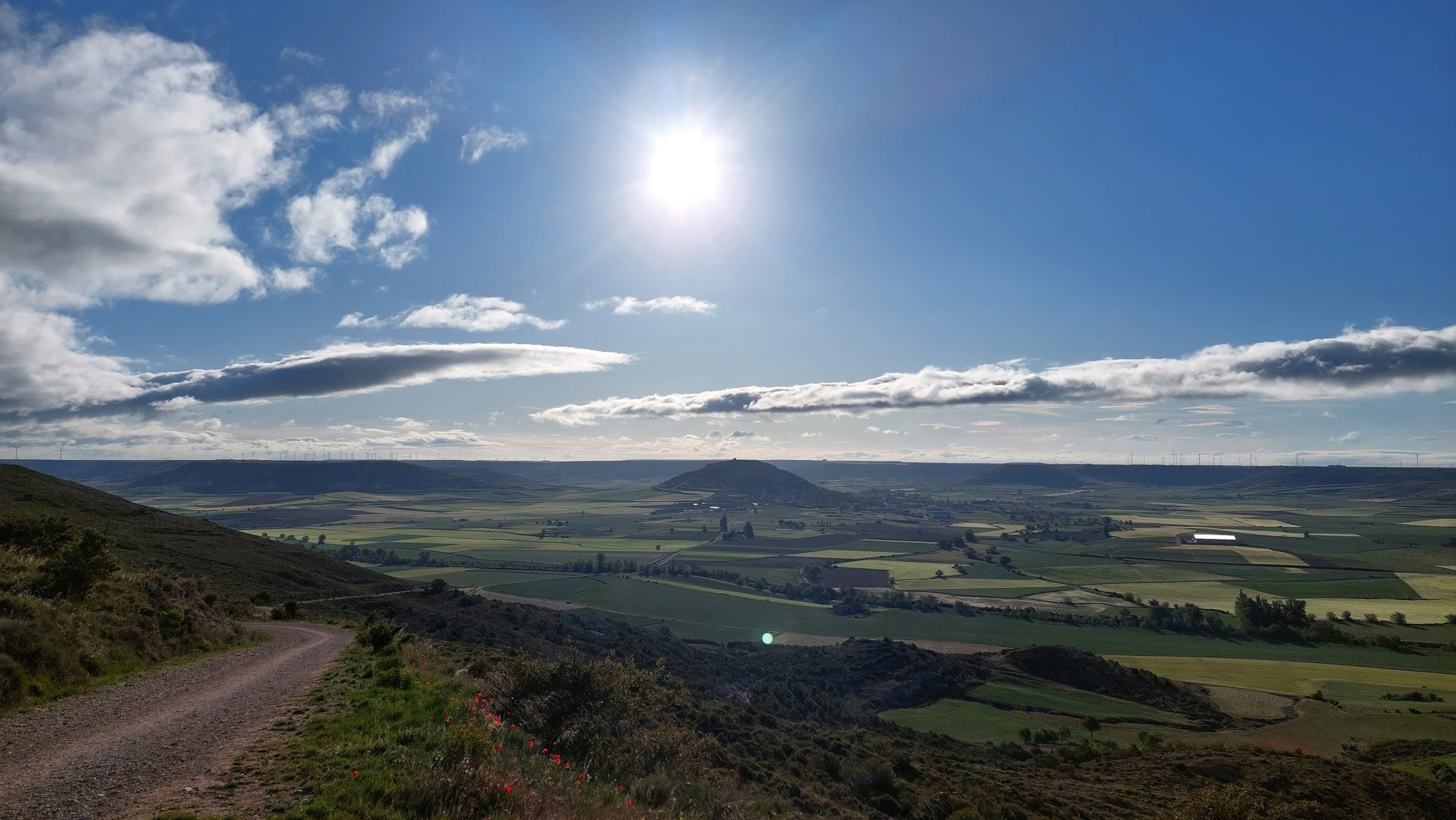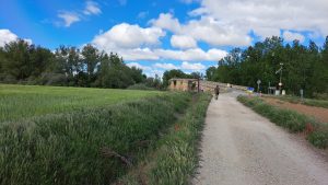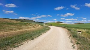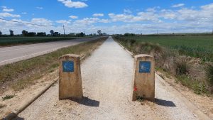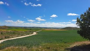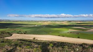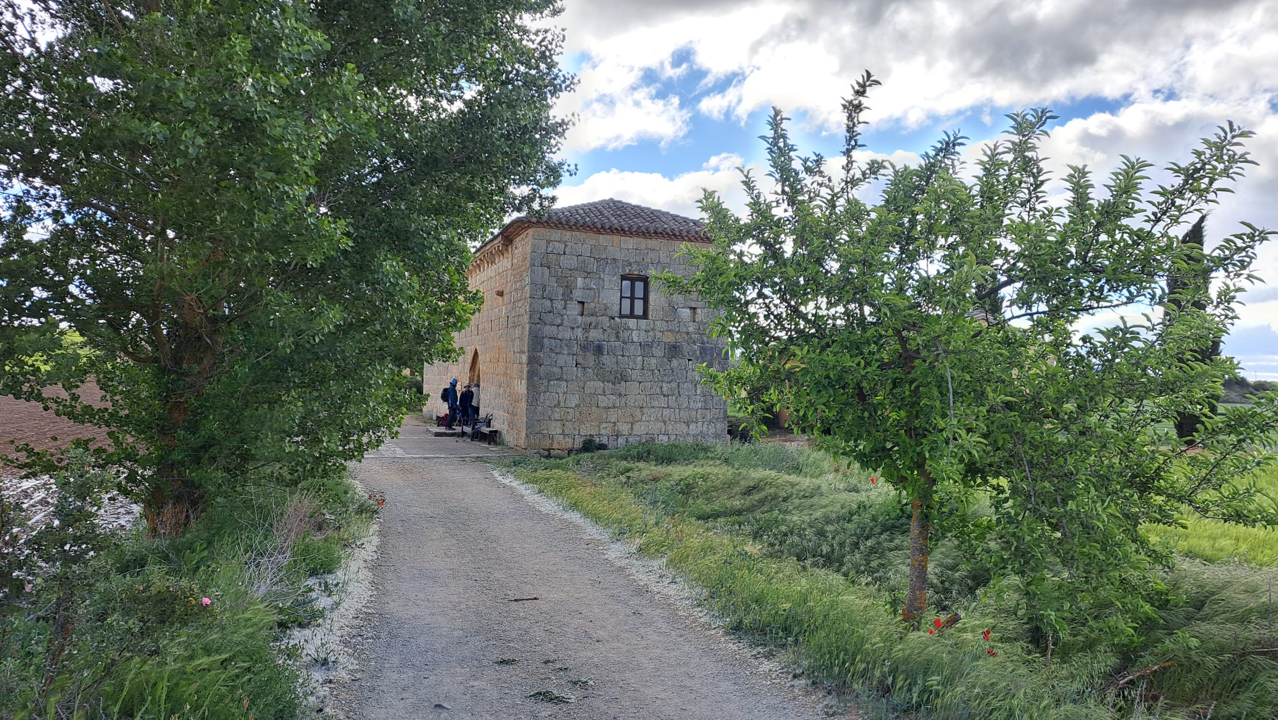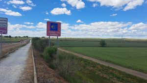Nach ca. 3,5 Kilometern kamen wir in Población de Camino setzten wir uns auf eine Bank und aßen unsere Äpfel die wir in Belorado gekauft hatten. Sie hatten schon einige Tagesreisen in unseren Rucksäcken hinter sich. Nun wurden die Beine langsam schwer. Da unsere Etappe heute 35 km sein soll, haben wir unser schweres Gepäck voraus geschickt, was gut war. Dies ist schon im Hotel angekommen. Noch ca. 5,5 km bis zum Ziel, wir dachten wir konnten Villarmentero de Campos schon sehen, aber es war der Ort vorher Revenga de Campos.