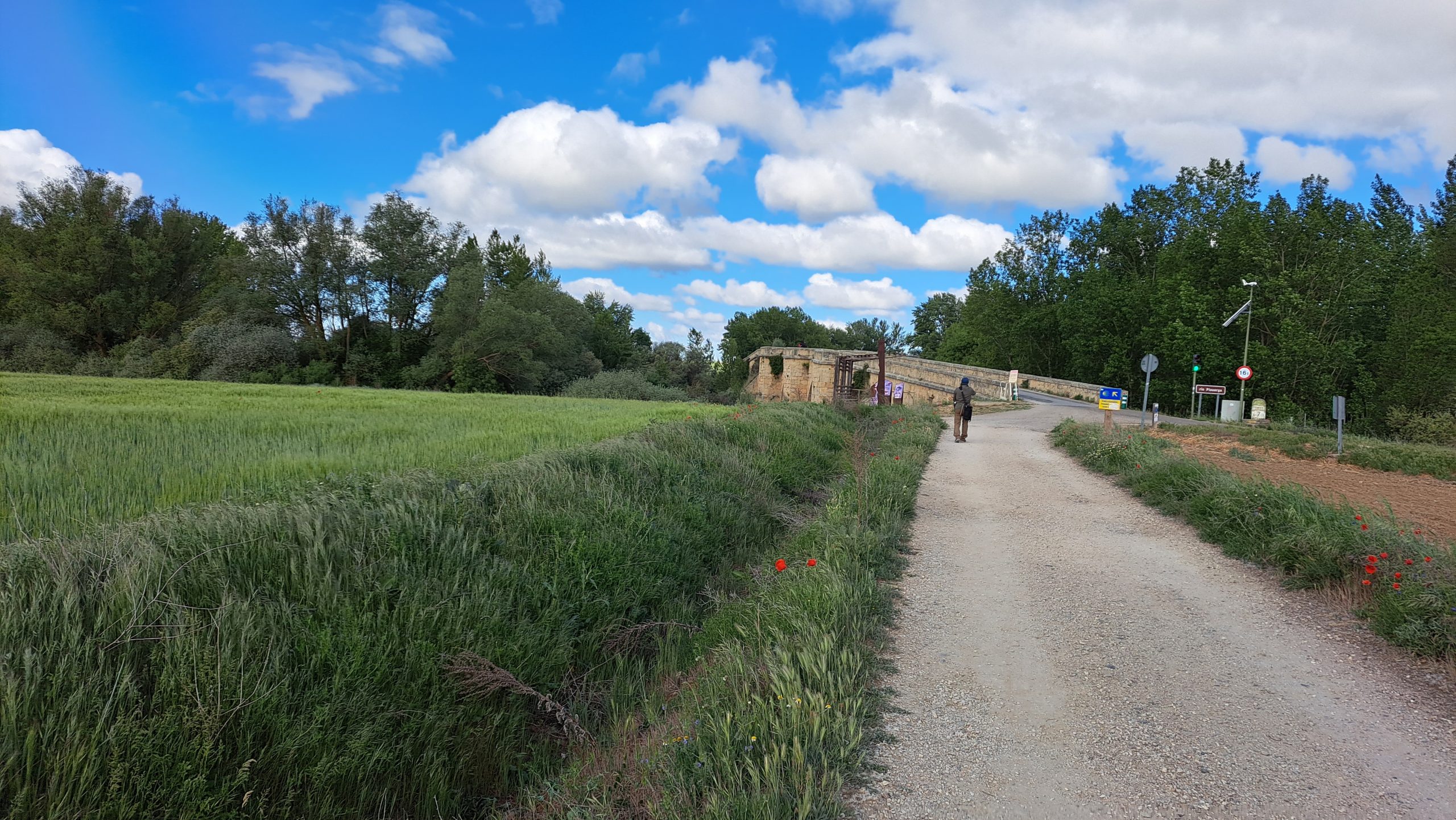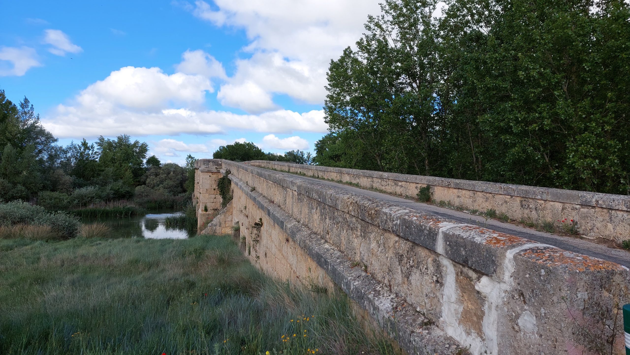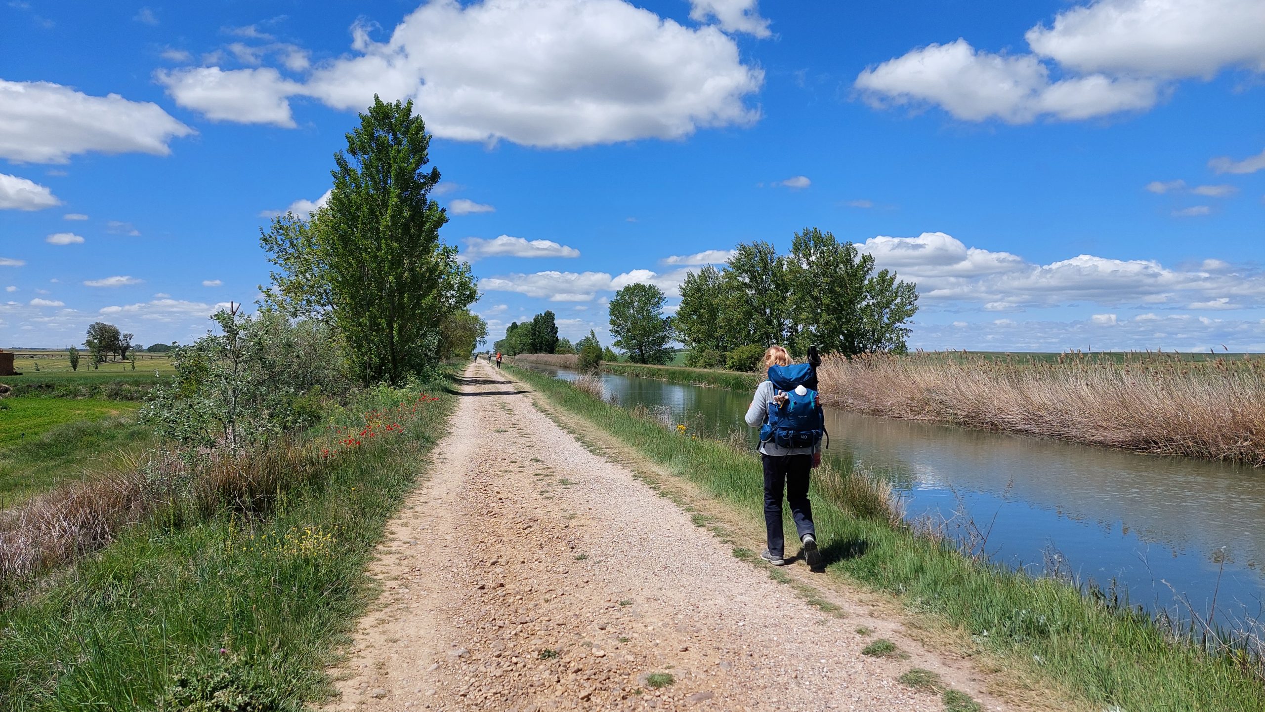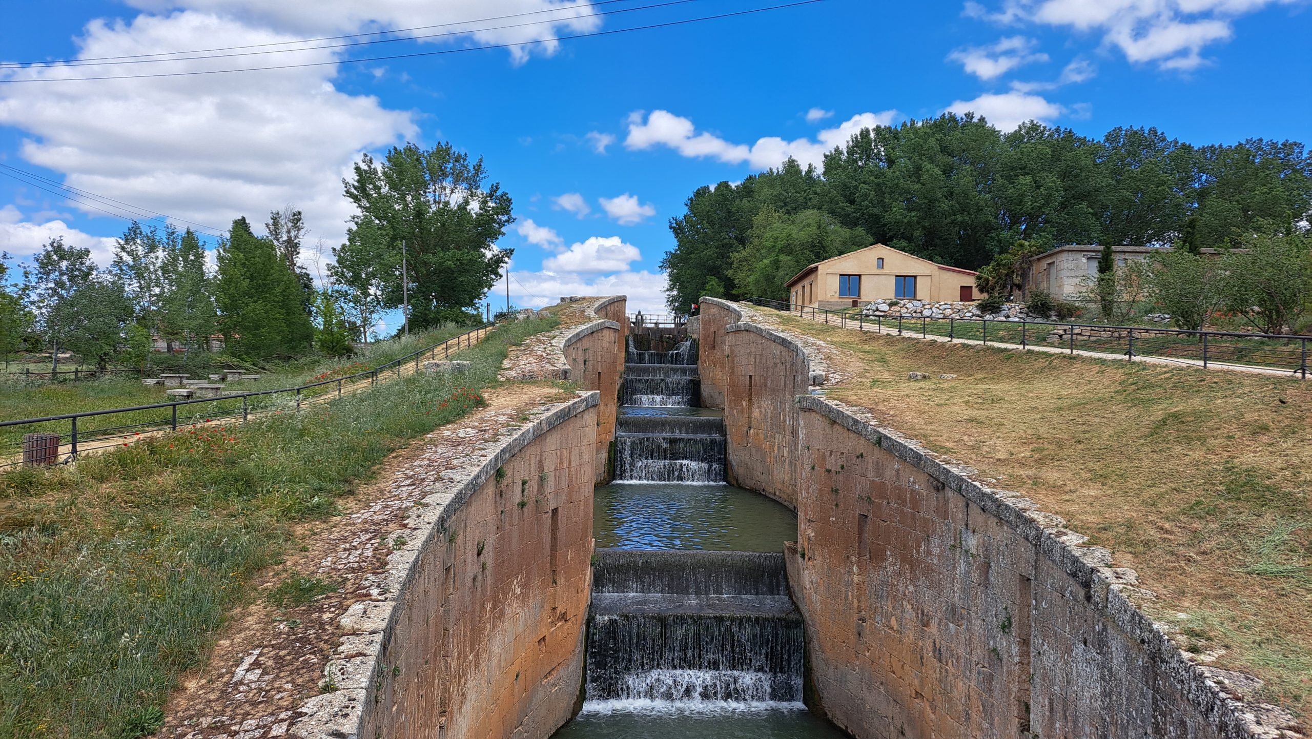 Hinter Boadilla del Camino liefen wir an einem Kanal entlang. Hier würde auch ein Boot fahren, welches wir nicht sahen, es soll wohl nur 2 € kosten. Aber der Weg lief sich so schön, ein Boot brauchten wir nicht. An den Staustufen angekommen, machten wir einige Fotos. Wir wunderten uns über die vielen Menschen, die waren doch eben noch gar nicht auf dem Weg, dann sahen wir ihren Bus. Einige Spanier machen einen Ausflug hier her.