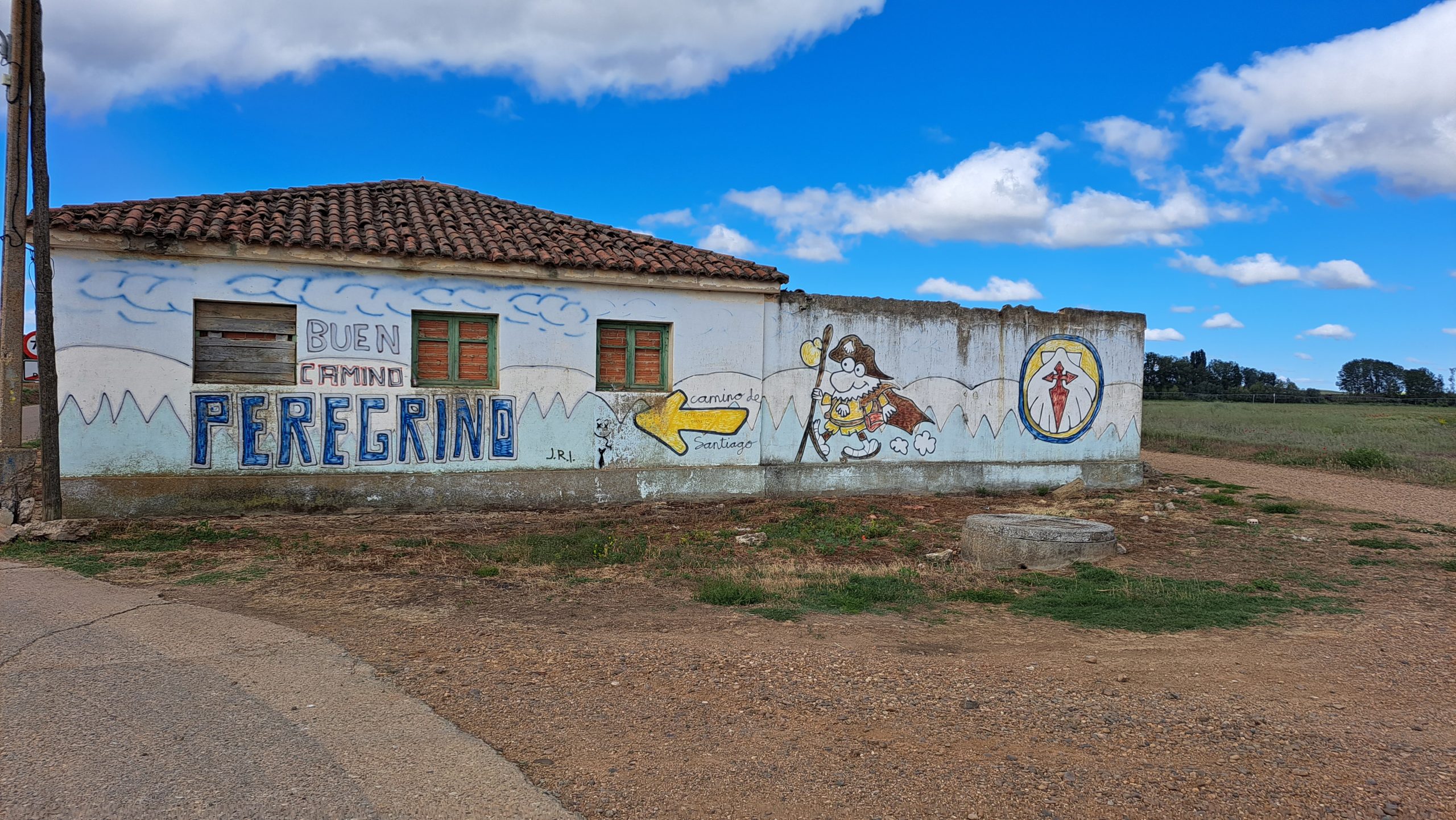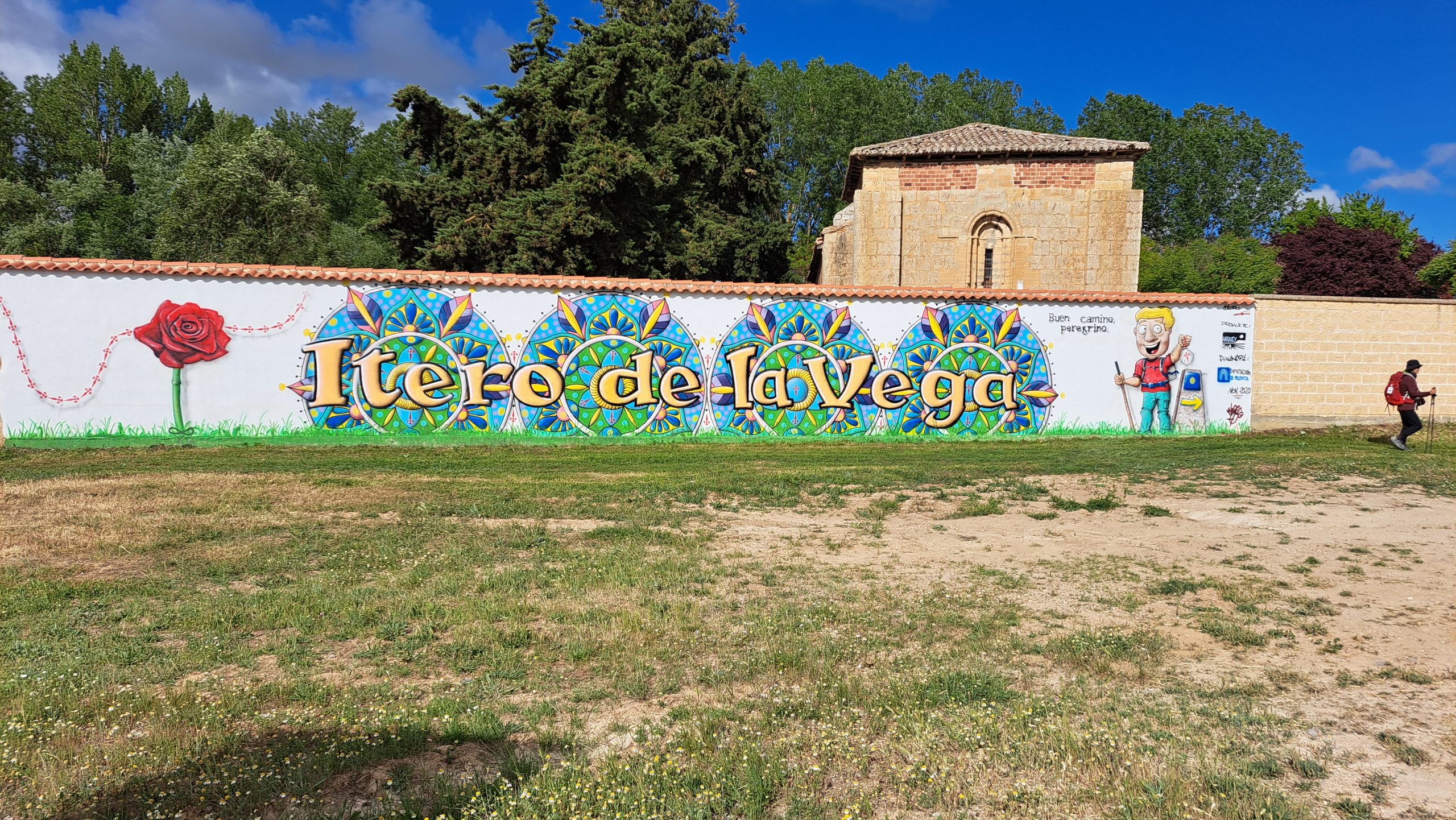 Hinter einer alten Brücke bogen wieder rechts auf dem Camino ab. Vor Itero de la Vega kamen wir an einer weiteren Kirche vorbei mit Rastplatz, wir schauten hinein und bekamen einen Stempel. In Itero de la Vega gab es für uns erst einmal einen Café con Leche.