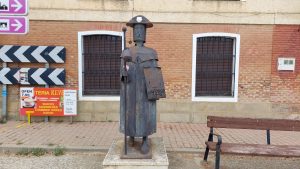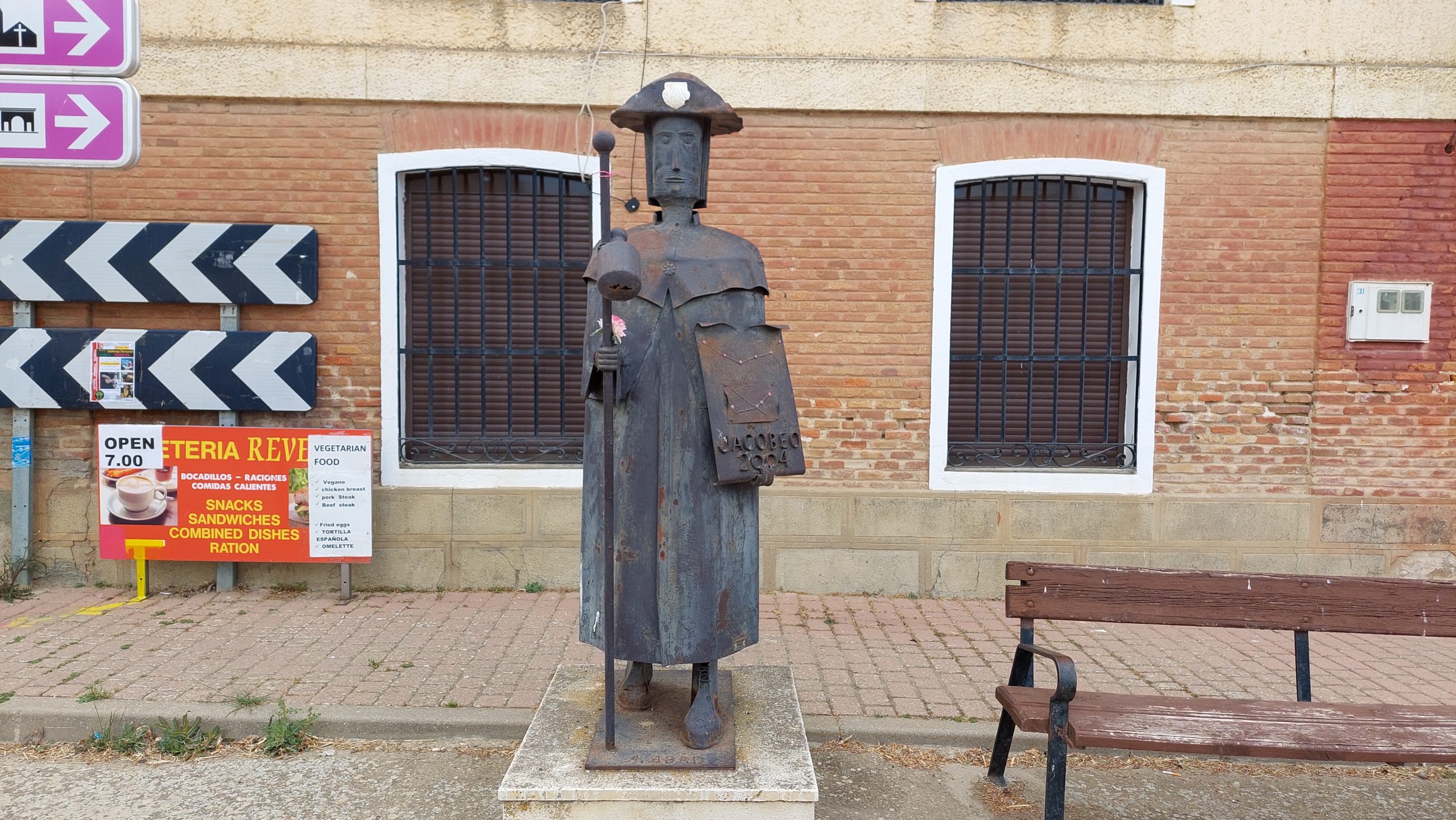 Wir aßen unser gestern gekauftes Baguette mit Chorizo und eine Banane. Frische Socken und Schuhe wieder an liefen wir weiter bis Boadilla del Camino und wurden vor der Kirchen angesprochen, ob wir ein Bett benötigen. Aber wir hatten unsere Unterkunft schon gebucht, bis dorthin waren es noch einige Kilometer. In einer Bar gab es noch einmal einen Kaffee.