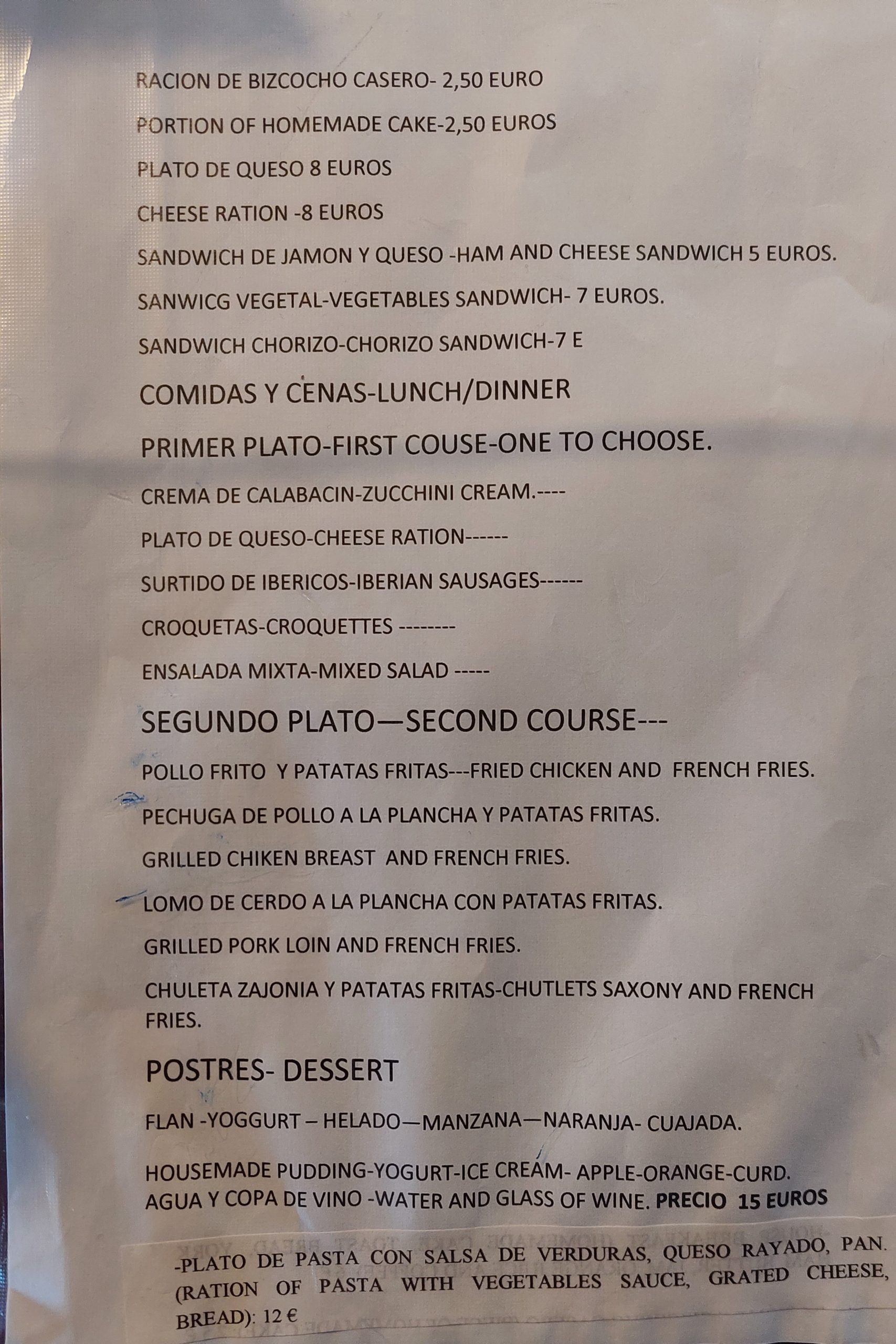 Das Hotel war wirklich sehr schön und ruhig. Es gab sogar Abendessen, welches wir dankend annahmen. Mit uns waren es vielleicht noch 3 Pilger, die hier übernachteten. Im Ort gab es auch eine Albergue, ich denke im Hotel war es ruhiger. Das Abendessen war sehr lecker. Es gab Zuchinisuppe, eine Käseplatte, Hühnerbrust mit Pommes und Eis oder Joghurt zum Nachtisch für nur 12 € pro Person. Brot und Wein gab es gratis. Gestärkt gingen wir ins Bett und schliefen sehr gut.