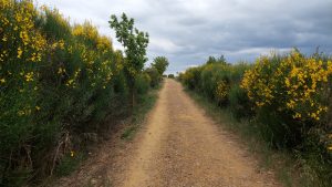 Wir kauften eine Cola und ein Bier. Meine kleine Zahnpasta war fast alle, ich kaufte gleich noch eine neue kleine Tube. Nun noch schnell zur Toilette und einen Stempel geben lassen. Noch 6 km, dann sollten wir in Ledigos ankommen. Eine Blase machte sich bemerkbar und ich tapte sie ab, die letzten 2 km werde ich doch schaffen. Die Ginsterbüsche am Wegesrand dufteten sehr stark.