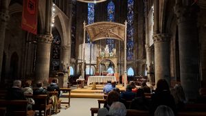 War das eine herrlich heiße Dusche. Nun gingen wir zur Casa Sabina auf ein Café con Leche und ein Bier. Hier lernten wir einen Schweizer kennen, an dessen Tisch wir uns setzen konnten, wir redeten eine ganze Weile. Auch über das Rucksackgewicht, unseres war doch zu viel. Er meinte sein Rucksack hätte 6 kg, ich war neidisch, meiner hatte 10 kg ohne Wasser. Wir erzählten dass wir viele leichte Sachen dabei haben, er meinte nur 2x leicht wird auch viel, Recht hat er. Leider haben wir wieder nicht nach dem Namen gefragt, das ist irgendwie nicht wirklich wichtig auf dem Weg. Unsere Wäsche hatten wir im Kloster abgegeben zum Waschen, die wurde auch getrocknet und zusammengelegt. Das Ganze soll eineinhalb Stunden dauern. So hatten wir genug Zeit. 18 Uhr war Pilgermesse, in diese wollten wir gehen und uns den Segen für den Weg holen. Gläubig sind wir nicht, aber es war sehr schön und doch spirituell. Verstanden haben wir nicht viel, nur welche Nationen heute angekommen sind und dass sie uns einen guten Weg wünschen. Wir wurden mit Weihwasser gesegnet und bekamen einzeln eine Oblate.
