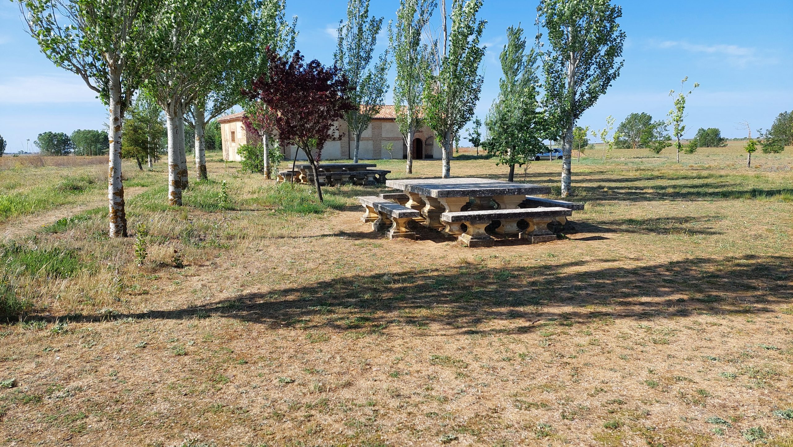 Dann gingen wir aus dem Ort heraus und immer an der Straße entlang. Nach ca. 6 km kam ein Rastplatz für Pilger, hier machten wir eine Pause und aßen die Reste von gestern Abend, sehr lecker, auch kalt. Aber gut als 2. Frühstück.