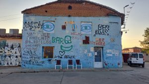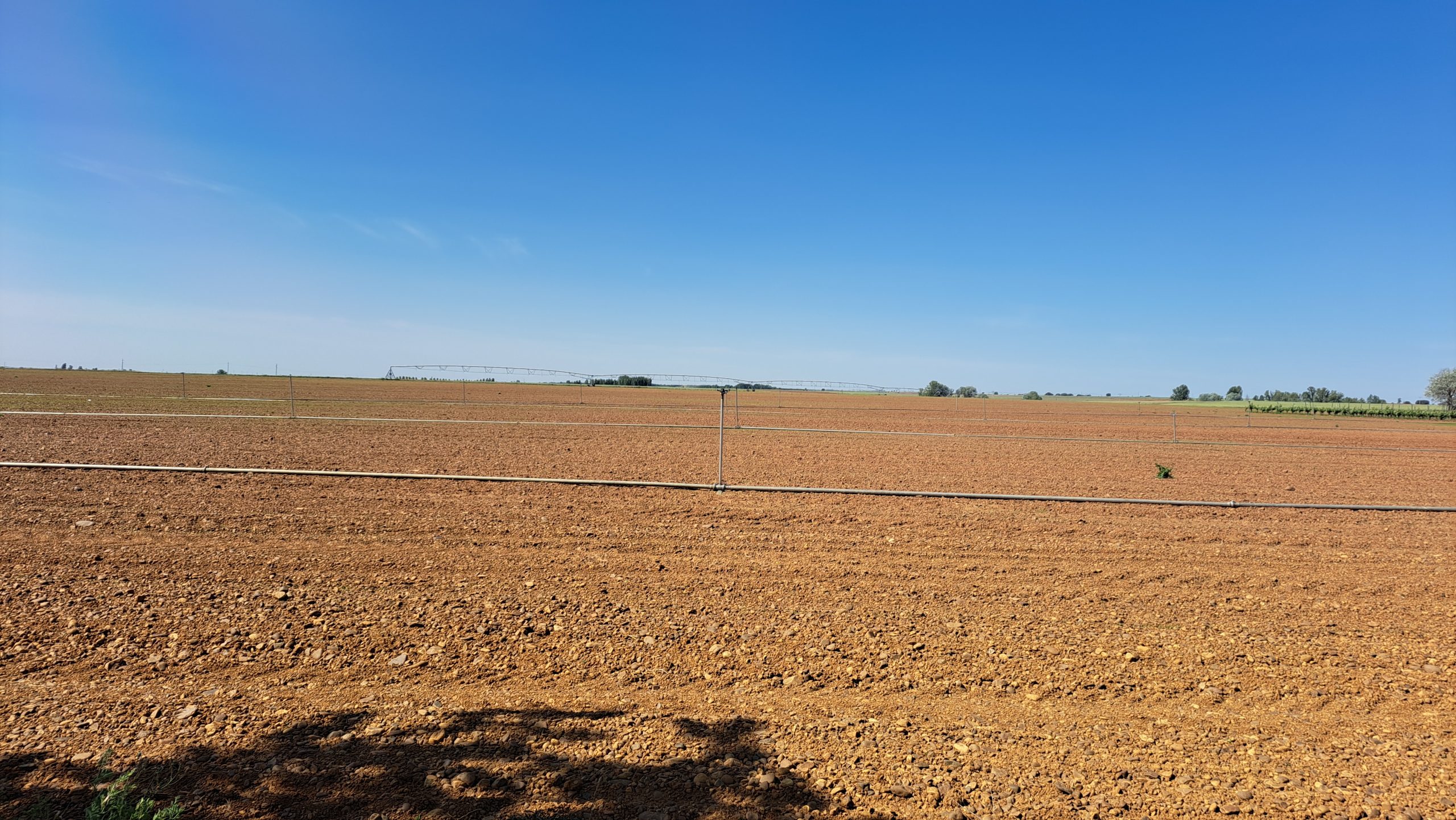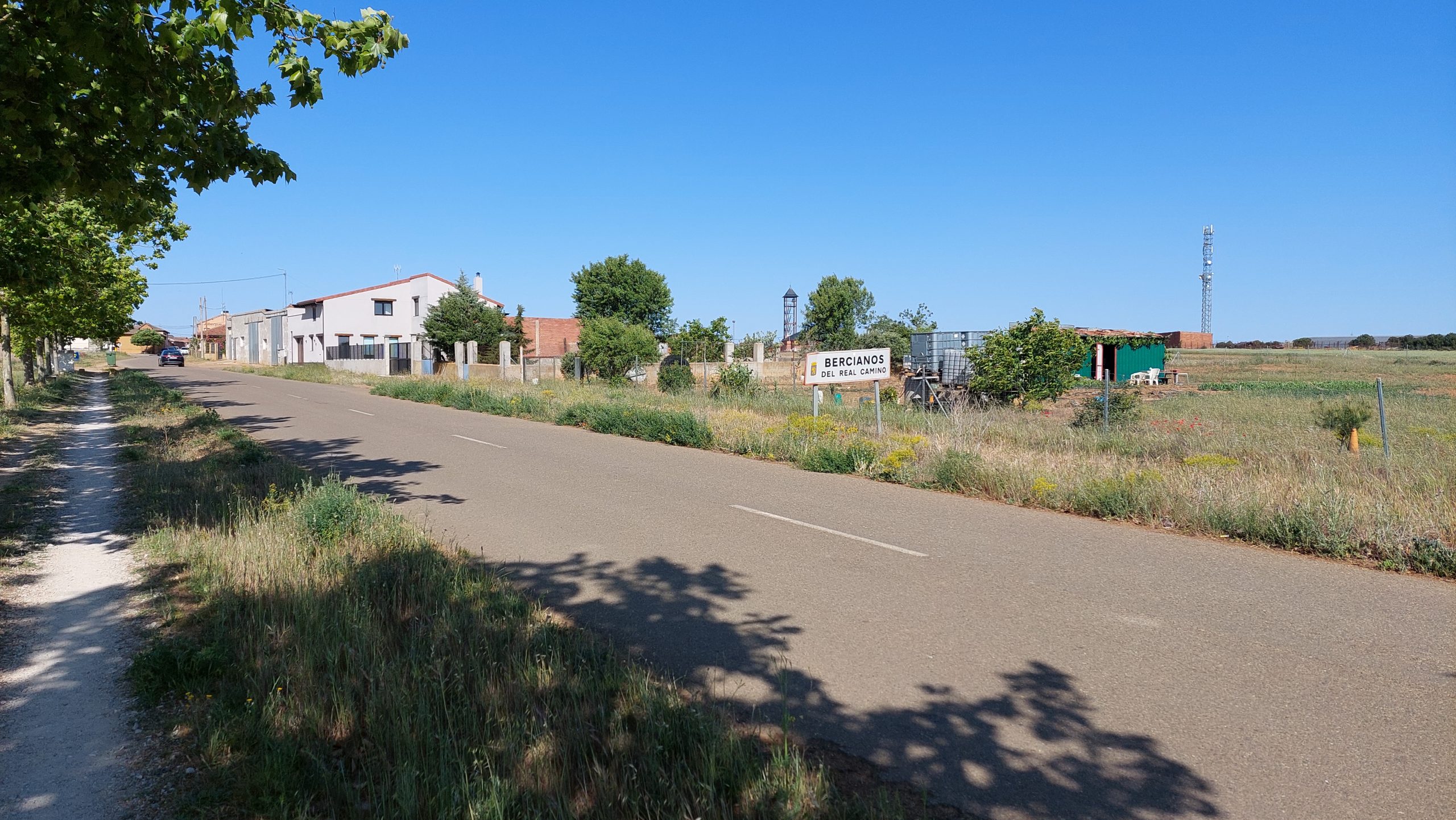 Sie wollte in Bercianos del Real Camino bleiben, aber wir mussten noch weiter, so verabschiedeten wir uns. Wir liefen weiter an Feldern, die mit Bewässerungssystemen bestückt waren. In El Burgo Raneo wollten wir in eine Bar einkehren.