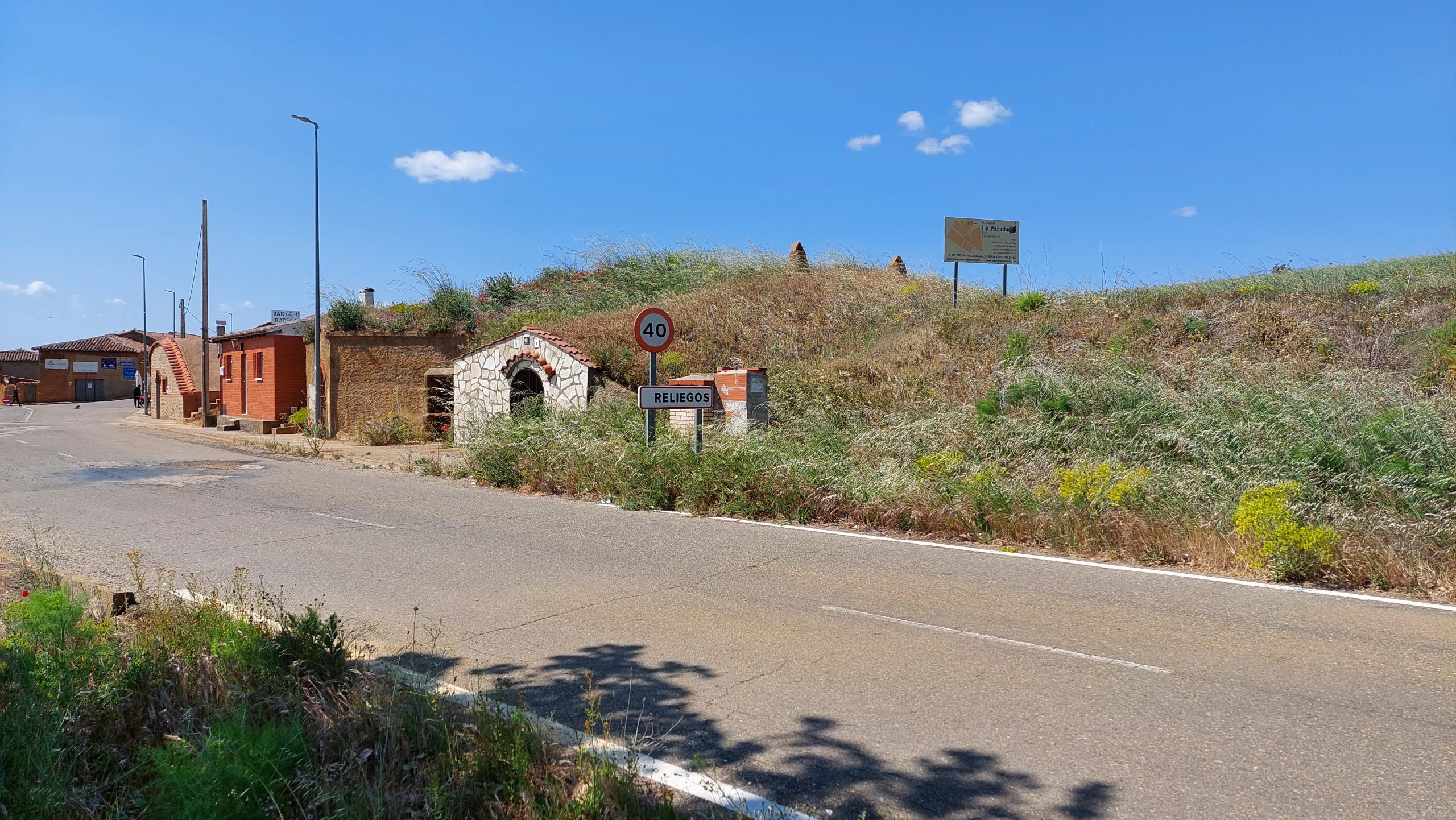 Wieder war der Ort in einem Tal versteckt. Noch eine Fußpause dann liefen wir die letzten Kilometer, endlich hinter einer Kurve waren Dächer zu sehen. Wieder am Ortseingang waren Hügelhäuser.