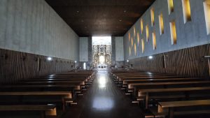 Wir liefen zur Estación de Autobuses, doch es fuhr gerade kein Bus. So nahmen wir ein Taxi bis Virgen del Camino. Es war eine gute Wahl, denn der Camino verlief direkt an der Straße entlang, fast nur Asphalt. Angekommen gingen wir in die naheliegende Bar und frühstückten. Dann zog ich meine Wanderschuhe an. Ein Abstecher in die Basilica musste sein.