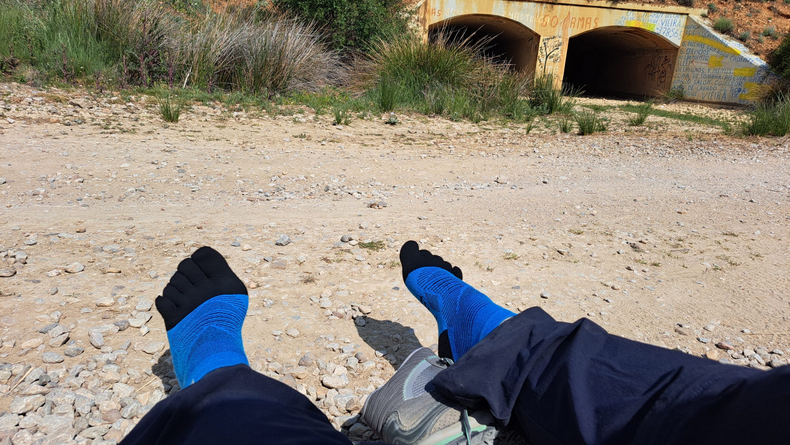 Hinter San Miguel del Camino brauchten meine Füße eine längere Pause und ich zog die Schuhe und Socken aus. Es gab ein paar Kekse und unsere Banane.