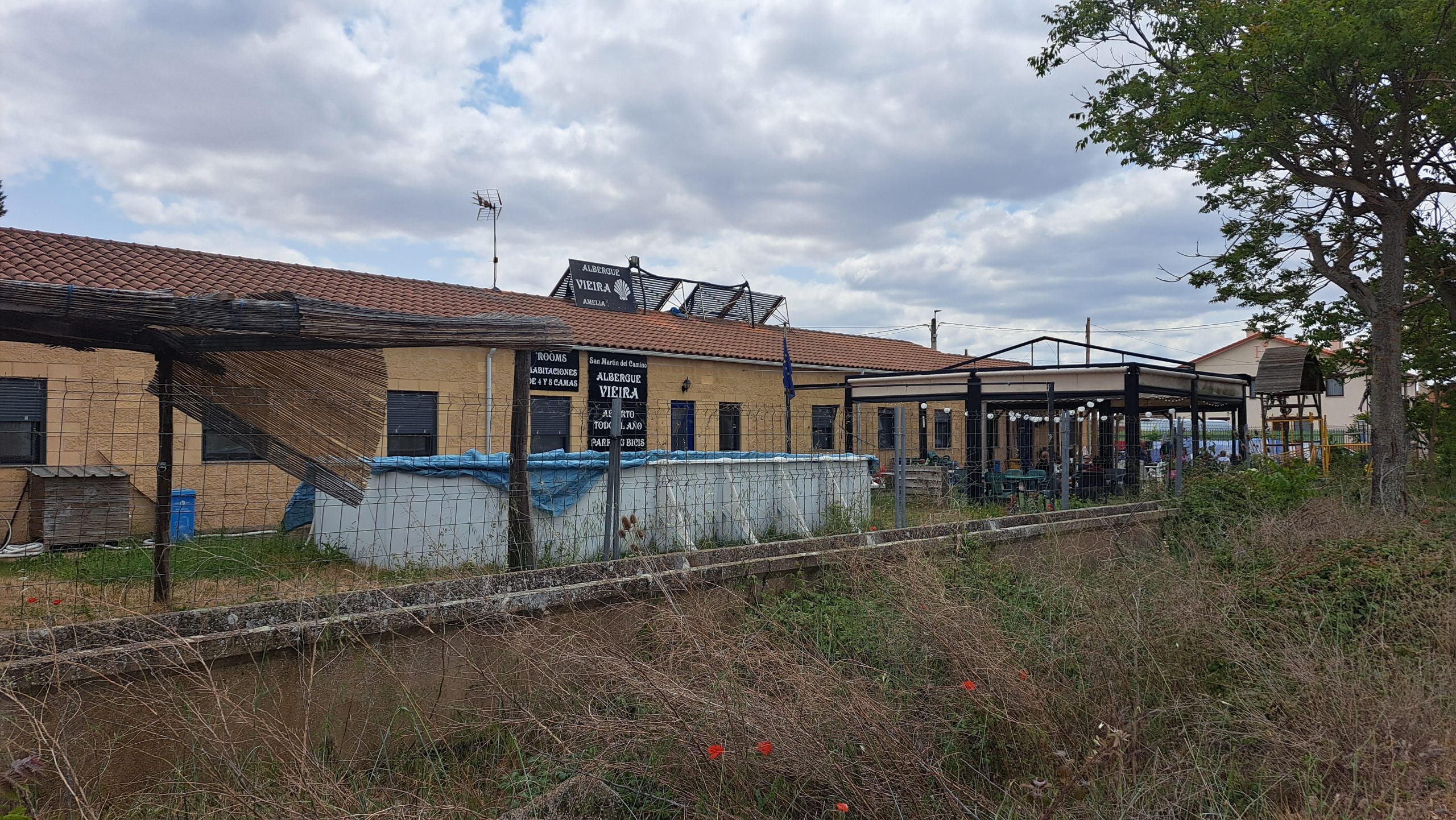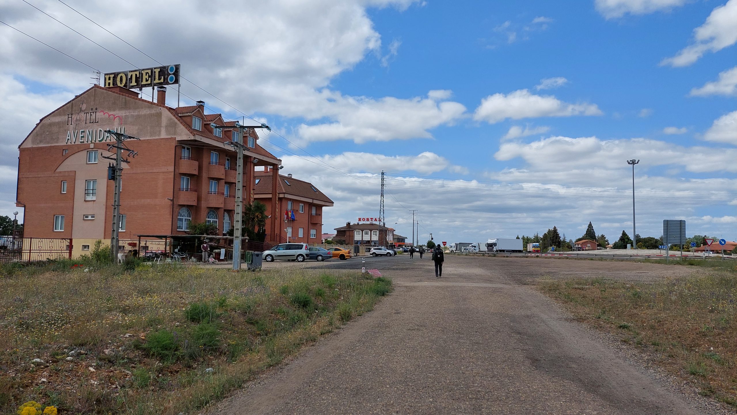 Noch 4 km laut App, doch es wurden 6 km bis wir an unserer Herberge ankamen. In Villadangos del Páramo liefen wir an einem Gewerbegebiet vorbei, Declaton hat hier sein Zentrallager. Nach einigen hundert Metern weiter kamen wir an einer Bar vorbei. Wir gingen rein und suchten uns einen ruhigen Tisch. Wir bestellten eine Kleinigkeit zu Essen und Cerveza / Cerveza con Limon.