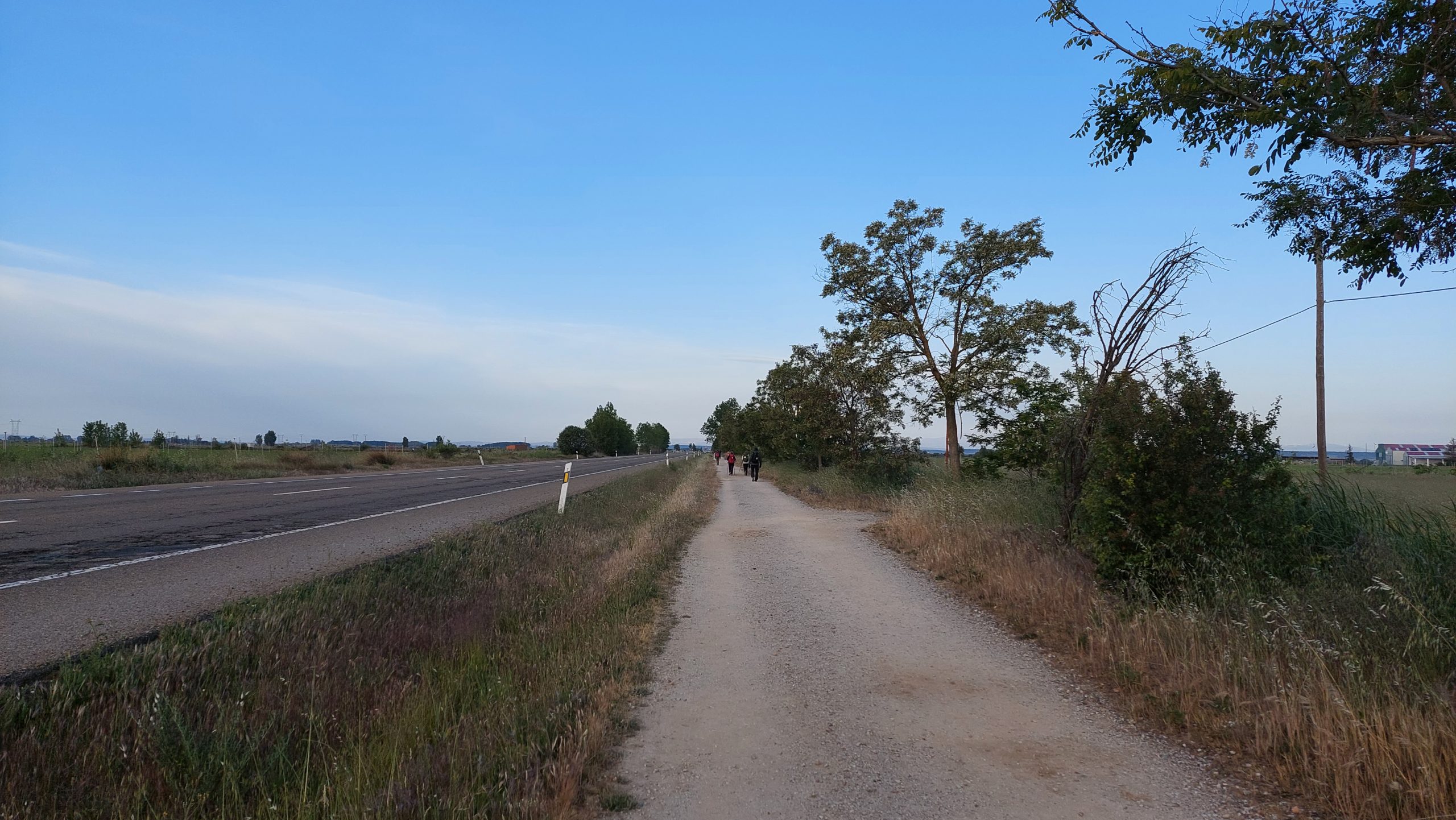 Nach einer recht kurzen und unruhigen Nacht, wollte ich morgens auf die Toilette, doch kein Papier. Die koreanischen Mitpilgerinnen haben die ganzen Rollen mit in ihre Betten genommen und eben wieder gebracht. Als wir fertig waren, gingen wir los, bis zur nächsten Bar. Hier gab es erst einmal einen Kaffee. Die beiden Pilgerinnen von gestern Abend, kamen auch gleich hinter her. Jetzt fragten wir erst nach unseren Namen die Isländerin hieß Birna und die Schwedin Catherine. Nach dem Kaffee liefen wir aus San Martin del Camino hinaus, kurz an der Straße entlang.