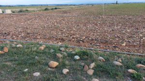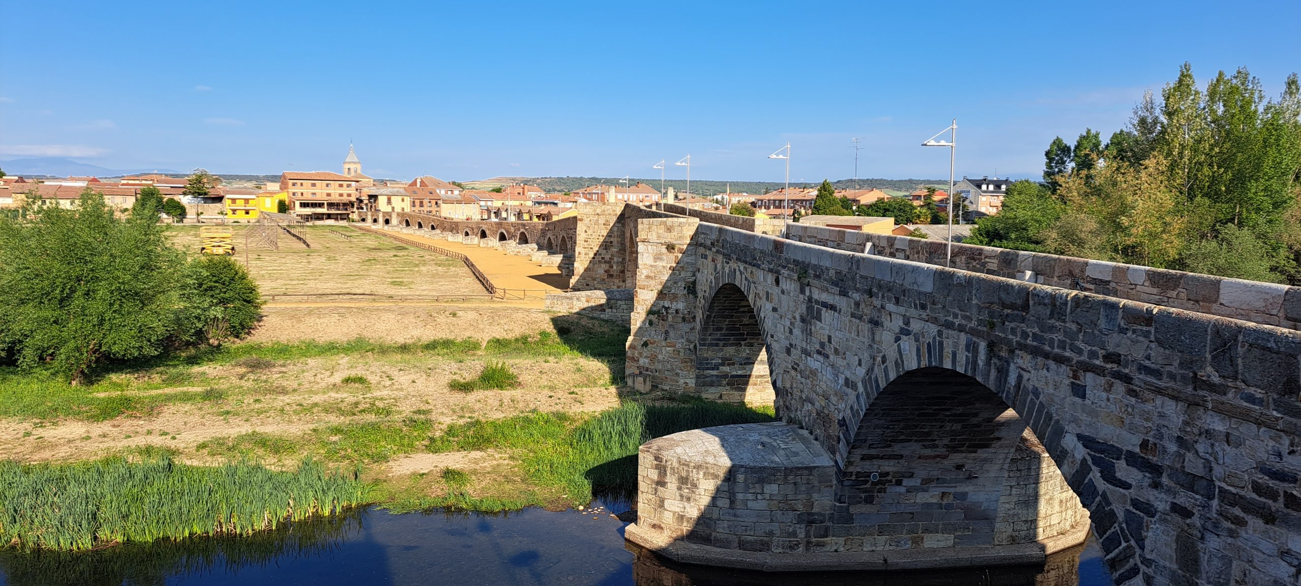 Nun bog der Weg auf die Felder ab, wie kann man hier etwas anbauen, bei diesen Steinen? Nach ein paar Kilometern kamen wir in Hospital de Órbigo an und liefen über die lange Brücke über den Rio Órbigo.