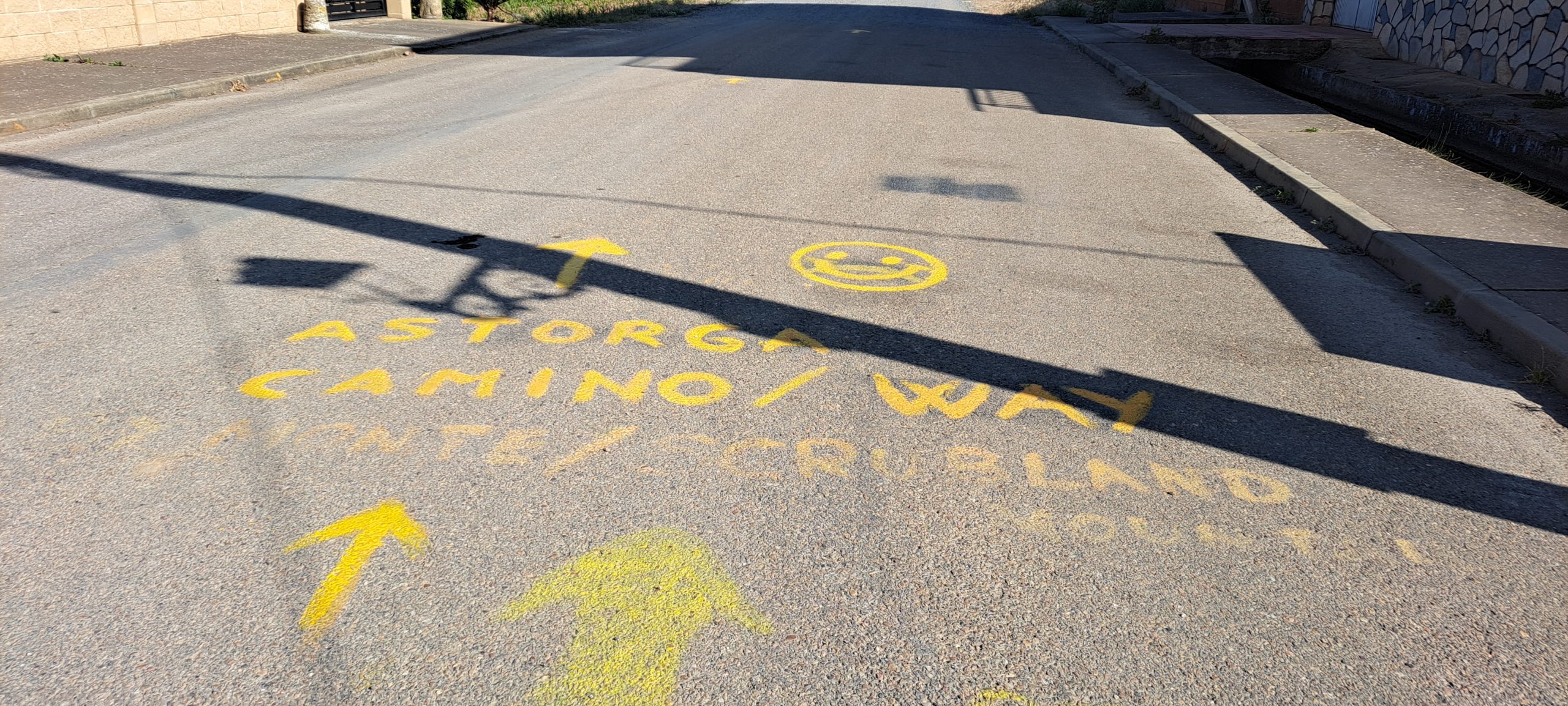 Diese sind meistens ruhiger und schöner. In der nächsten Bar in Villares de Órbigo trafen wir Anne aus Oxford wieder. Sie wollte heute bis Astorga gehen, wir bleiben einen Ort vor Astorga. Sie ging schon weiter, heute werden wir sie nicht wieder sehen. Auch wir gingen dann weiter, der Weg war nun wieder abwechslungsreicher mit einigen Steigungen. Wir gingen an Kühen vorbei, auch die Kälbchen konnten wir sehen.