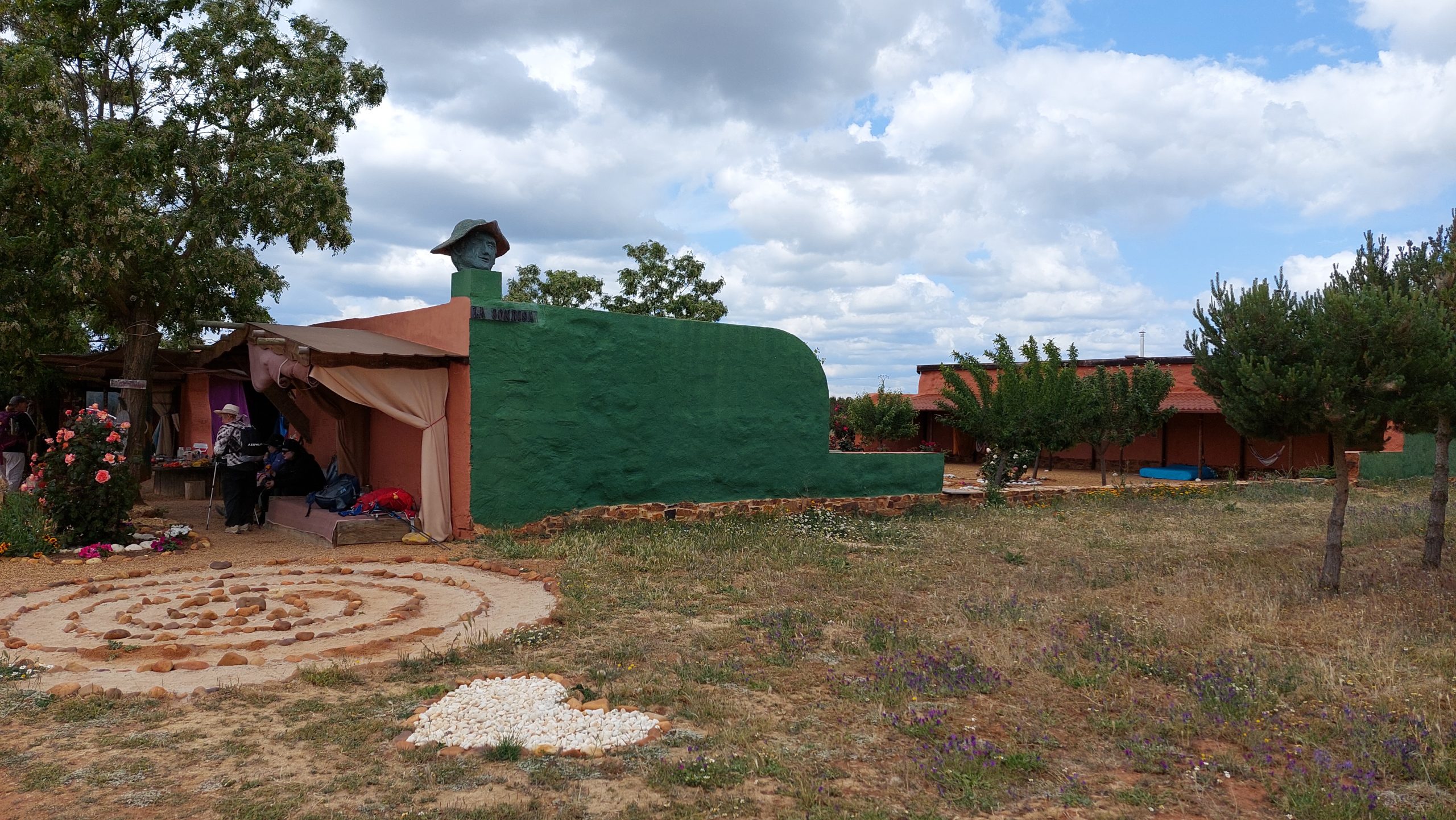 Auf der linken Seite war ein Festplatz, auf dem Ritterspiele veranstaltet werden. Für irgendeine Festlichkeit wurde auch gerade wieder aufgebaut. In der Bar links über die Brücke kommend frühstückten wir. Im Supermarkt kauften wir ein, da wir nicht genau wussten, ob es heute etwas zu Essen in unserem Hostal geben wird. Am Ortsausgang teilte sich der Weg und heute konnten wir die Alternativroute nehmen.