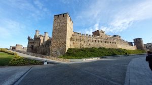 7:45 Uhr verließen wir unsere Unterkunft. Wir haben sehr gut geschlafen. Kaffee wollten wir nicht und hofften auf eine Bar in Molinaseca. Doch alle hatten noch geschlossen. An einer Herberge saß Thomas, den wir gestern Abend in der Bar kennen gelernt hatten, vor der Tür und zog sich seine Schuhe an. 2 Mädels tranken einen Kaffee, wir fragten ob wir auch einen bekommen könnten, aber dieser war nur Automatenkaffee, der nicht schmecken sollte. So liefen wir weiter. Keine Bar, kein Kaffee und nur Asphalt. Ponferada erreichten wir nach 2 Stunden. Die Tempelritterburg hatte auch noch geschlossen.