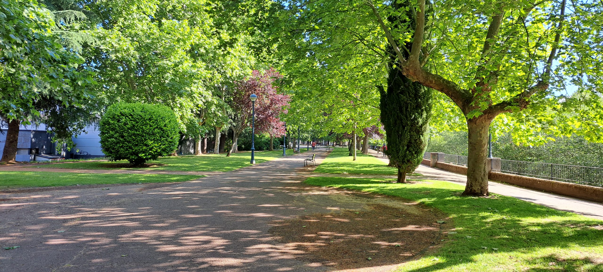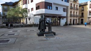 Nun mussten wir eine Treppe hinunter gehen, auf der linken Seite kam eine Bar, sehr unscheinbar, 2 Spanier saßen hier bereits. Hier bekamen wir einen sehr leckeren Kaffee und frische Tortilla. Unser Frühstück kostete gerade mal 12,50 €. Da es schon sehr warm geworden war, tauschten wir Jacke und Pullover gegen das T-Shirt. Nun gingen wir noch schnell in den Supermarkt nebenan und kauften einige Kleinigkeiten. Nachdem wir über die Brücke gelaufen sind, gingen wir durch einen schönen Park. Endlich mal ein paar Meter ohne Asphalt. Nun verlief der Weg an einem Museum vorbei.