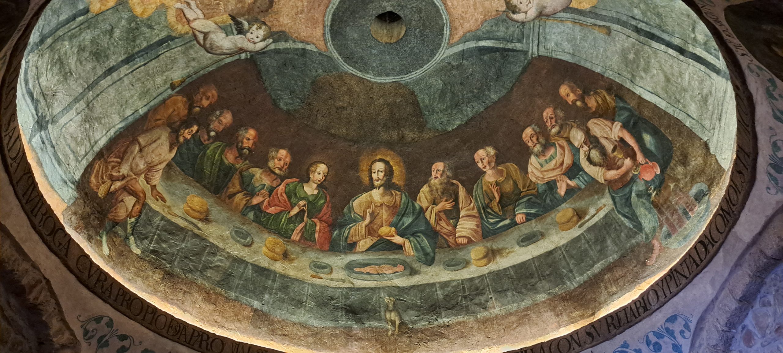 In Fuentesnuevas hatte sogar die Kirche offen. Hier bekamen wir sogar einen Stempel und einen neuen Pilgerpass. Jetzt sollten die Hefte reichen. In der Kirche gibt es ein Wandgemälde, welches das Abendmahl mit Maria zeigt.