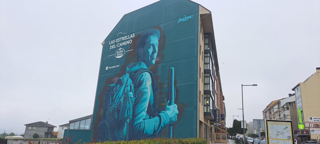 Eva lief nun weiter, denn sie lief schneller als wir. Ich ging den Berg wesentlich langsamer hinauf. Einige Kilometer in A Peroxa kamen wir an der Albergue El Aleman vorbei. Wir setzten uns in den Garten und tranken einen Kaffee und wer übernachtete hier? Die Eva. Wir unterhielten uns kurz, dann gingen wir weiter. Nach 5km kam noch eine Bar „No Camiño“, hier machten wir noch einmal eine kurze Pause. Der Weg war heute wieder voll von den Kurzzeitpilgern. Einige habe nicht einmal einen Rucksack. Handy und Wasserflasche waren oft das einzige was sie dabei hatten. Naja ich ignoriere es, aber Nico macht sich oft lustig.