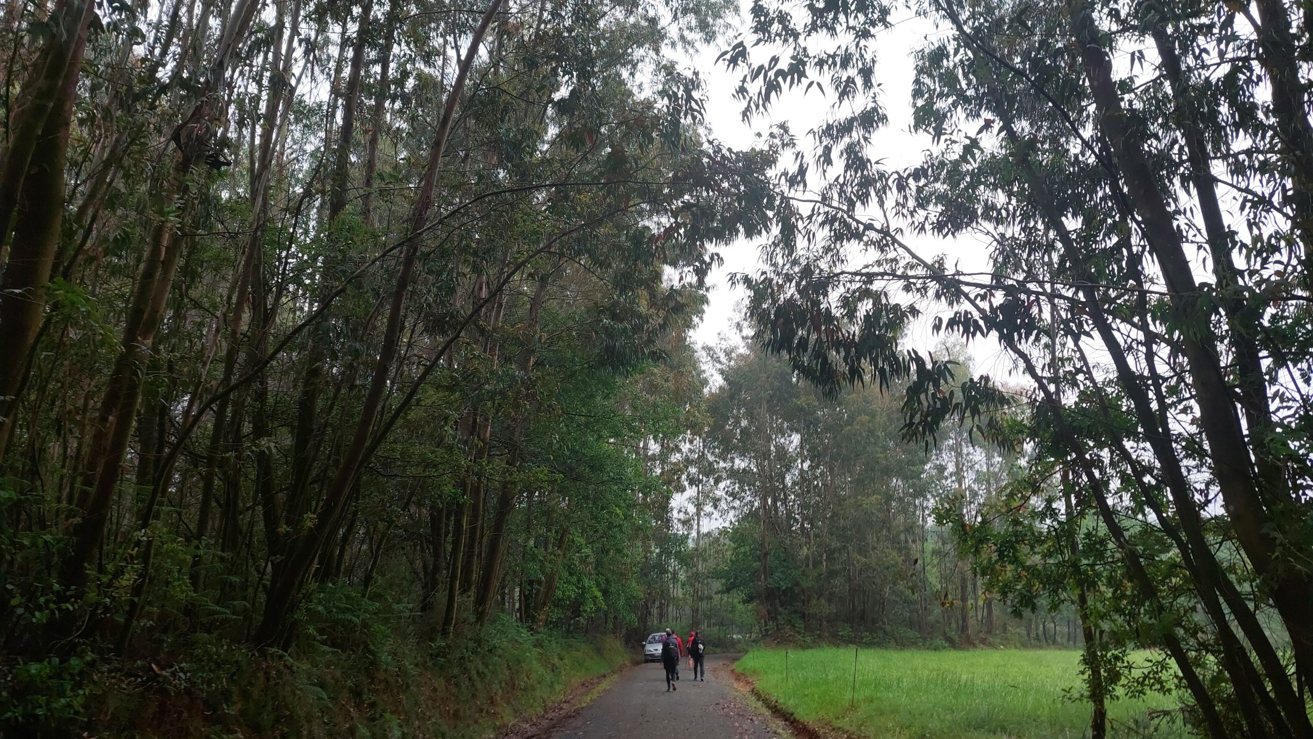 Dann ging es links auf einen schmalen Weg aus dem Ort hinaus. Endlich war der Asphalt vorbei. Aber es waren schon einige Pilger unterwegs. Heute kamen wir wieder durch Eukalyptus Wälder und diese rochen auch danach. Die Tage zuvor roch alles nur nach Dung von den Äckern. Immer wieder kamen wir in den Haupt-Pilgerstrom.