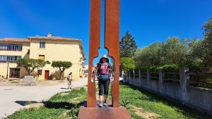 Nun war es nicht mehr weit, wir gingen eine alte Römerstraße entlang und kamen an eine Pilgersilhouette vorbei.