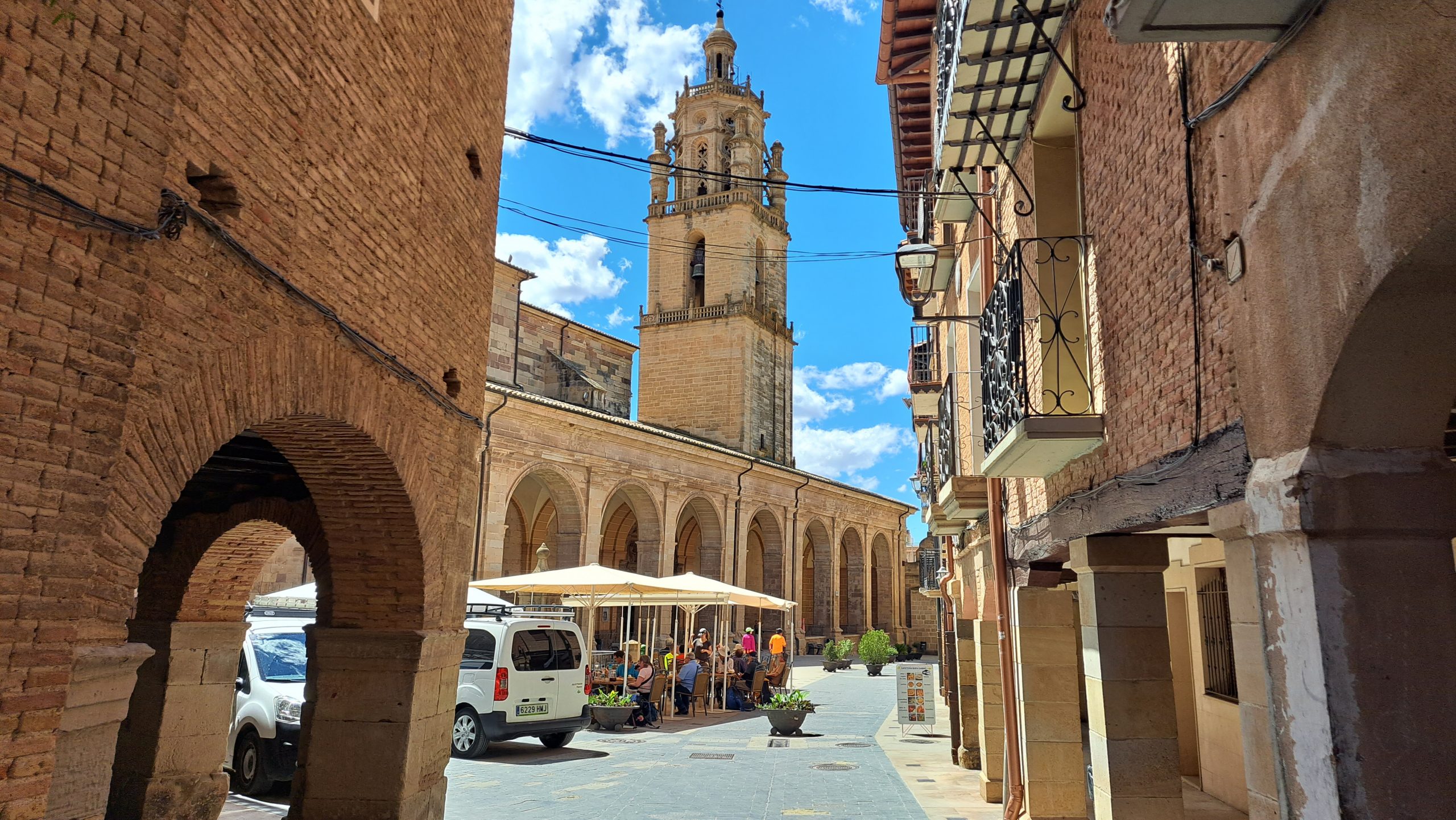 Wir liefen den Pilgerweg weiter und bogen vor der Brücke links ab, gleich rief uns ein älterer Spanier hinterher, dass wir falsch laufen. Wir erklärten ihm, dass wir zur Tourist Information wollten und er strahlte uns an. Hier ließen wir uns den Stadtstempel geben. Langsam wurden die Füße schwer. Wir schauten ob ein Bus fahren würde, dieser würde erst in 3 Stunden kommen, so lange wollten wir nicht warten, wir versuchten es. Noch 6 Kilometer bis Sansol. Die Kirche von Sansol war schon sichtbar. Wir liefen und liefen, aber die Kirche wollte nicht näher kommen. Nach gefühlten 2 Stunden machten wir eine Pause, wir suchten uns einen Schattenplatz und ruhten die Füße aus.