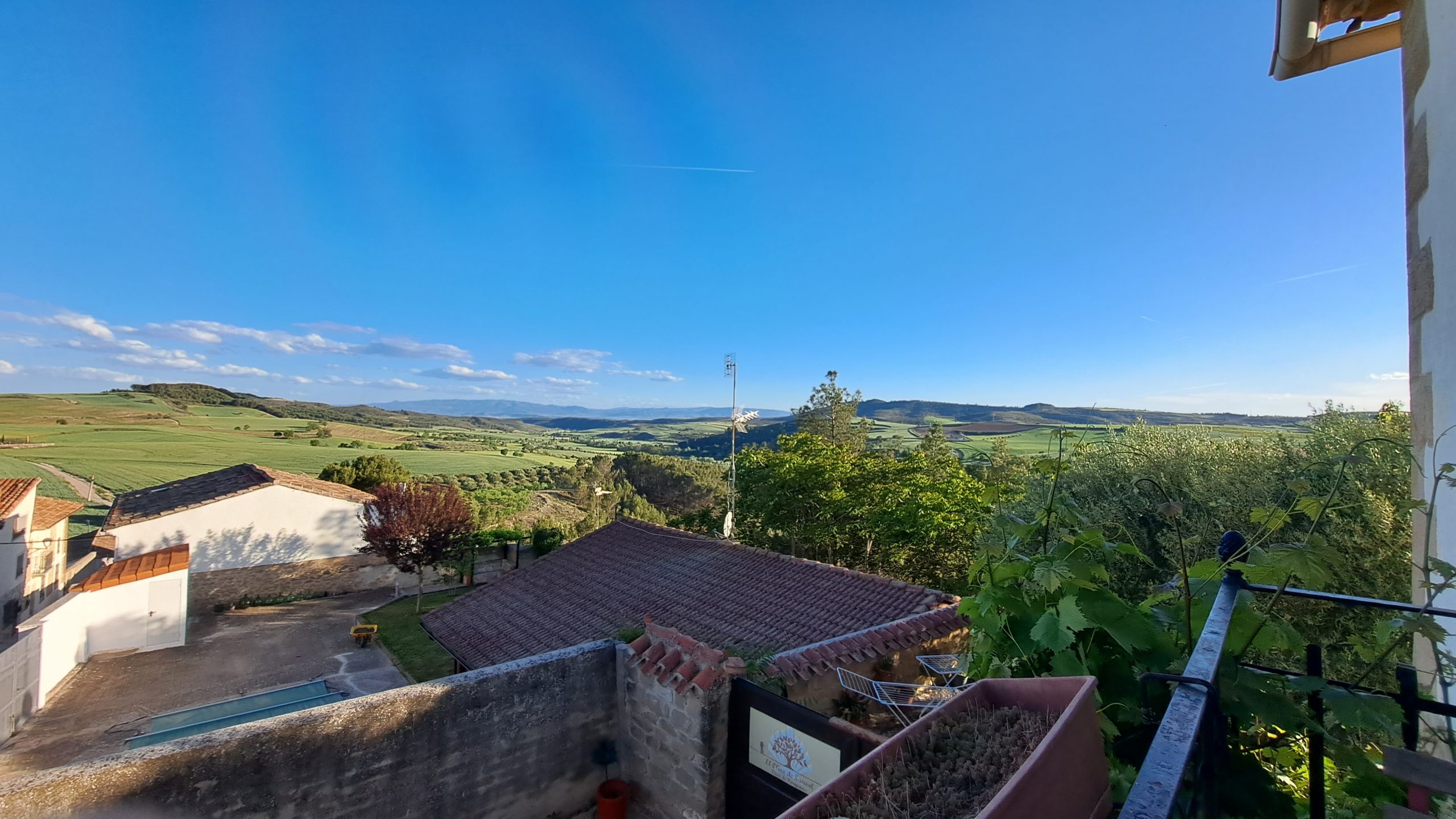 Wir klingelten, aber keiner öffnete. Es hing eine Telefonnummer an der Tür, ein Mitpilger bedeutete uns dort anzurufen. Dies taten wir und bekamen unsere Zimmernummer gesagt und dass es Kaffee und Tee als Flatrate gab. Einen Herbergsmitarbeiter haben wir nicht gesehen. Den Pilgerstempel konnte man sich selber nehmen, dieser stand an der Tür auf dem Schreibtisch. Nach einer kleinen Pause und heißen Dusche suchten wir etwas zu Essen in Sansol. Es soll ein Supermercado geben, dieser war noch geschlossen, so gingen wir in eine Bar, hier gab es nur belegte Brötchen, mehr leider nicht, so wie die Bilder im Internet zeigten. Nach dem Essen gingen wir noch einmal zum Supermercado, dieser hatte nun geöffnet. Hier gab es quasi alles, was mach benötigte. Essen, Haushaltswaren und Baumarktartikel. Wir wollten Baguette und Wasser kaufen, naja das Baguette war steinhart. So nahmen wir nur Wasser, ein paar Kekse und 2 Bananen für 6 € mit. Dann liefen wir zur Herberge zurück, wir tranken noch einen Kaffee auf der Terrasse der Küche und genossen die Aussicht.