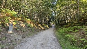 Nach einigen hundert Metern, geht es von der Hauptstraรe weg und endlich auf Waldboden weiter. Die Sonne schien wieder und der Weg war einfach wunderschรถn.
