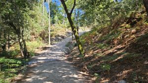 Wir liefen durch Eukalyptus-Wรคlder und es roch sehr stark nach Eukalyptus. Doch dann ging der Weg auch wieder bergauf und hier hing einfach eine Schaukel im Wald.